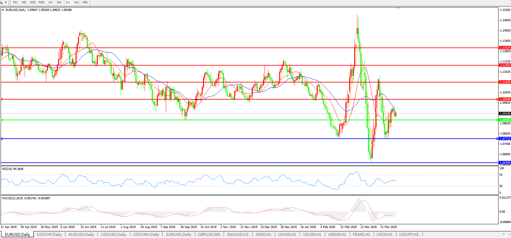 欧元兑美元EURUSD   日线图: