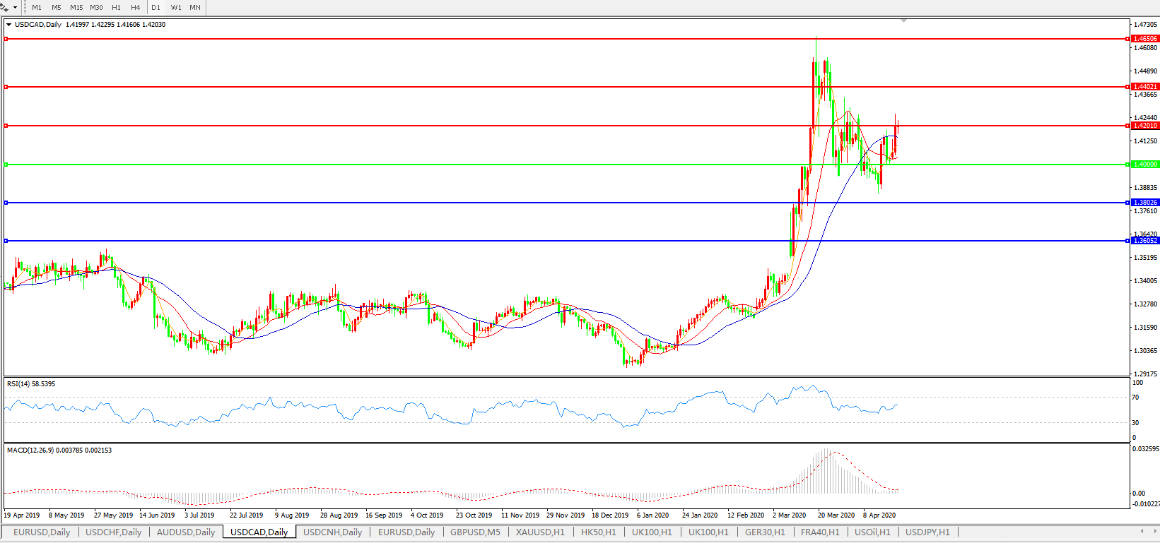 交易策略: 在1.4000之上,看涨,目标价位为1.4200、1.4400