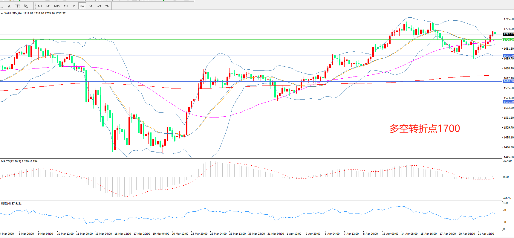 多空转折点:1700.00