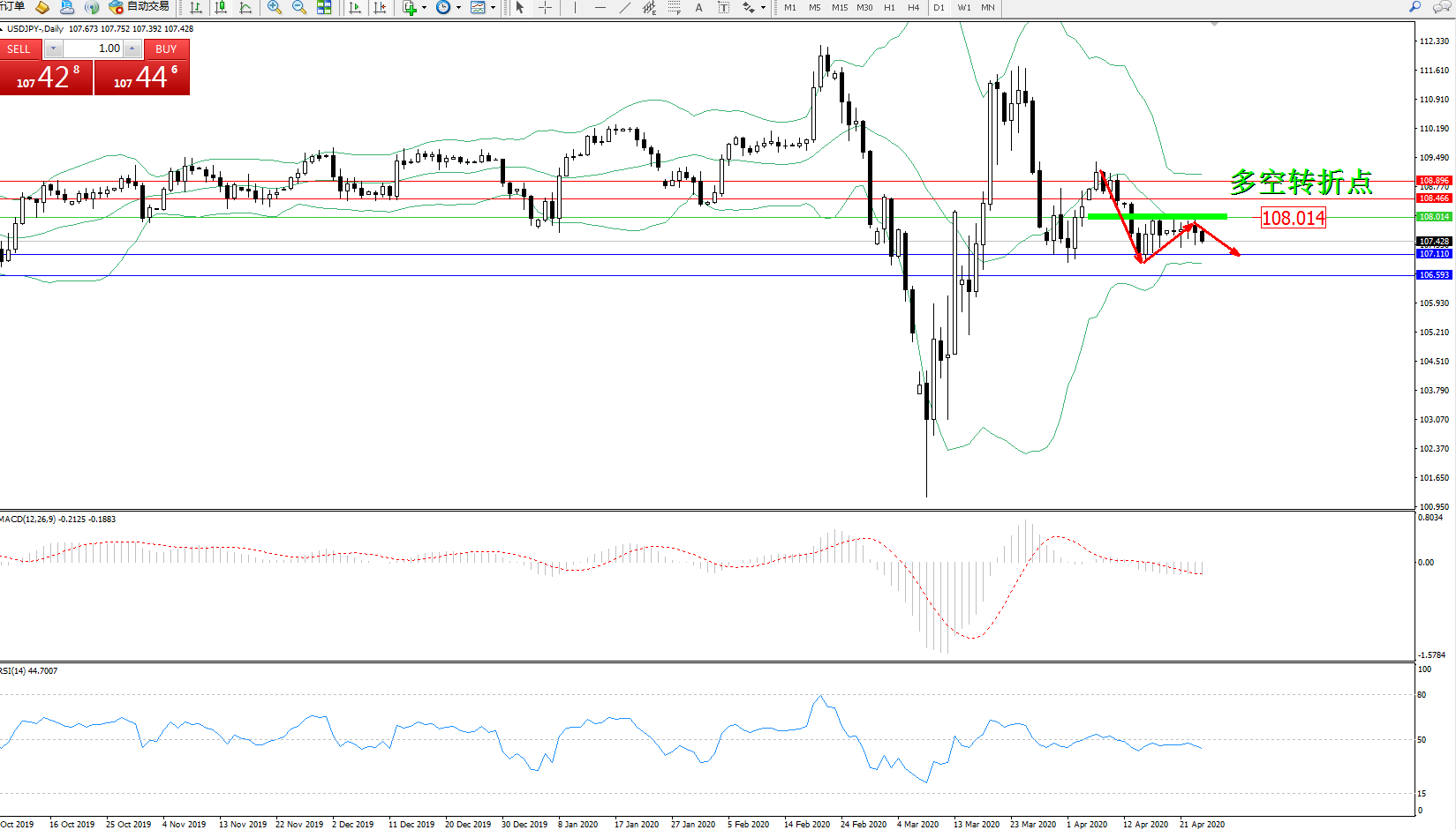 美元兑日元下跌0.08%107.51;日本央行将发布政策决议,虽然受到疫情影响,此次央行政策会议会期被临时缩短到一天,但看点却仍然不少,业内投资者,甚至包括一些媒体都猜测日本央行可能使出最后撒手锏,进一步放开购债规模与范围限制,这令日元汇价在上周四一度出现异动。日本央行并不会立即采取太大力度的进一步措施,因为事实上其政策施展空间已经非常有限,所以,即使其口头上允诺进一步强化QE力度,投资者之后也不再会有更大的进一步反应。反而,在日银决议出炉之前,日本会先行发布就业数据报告,往常情况下市场对日本就业数据关注程度有限,但眼下这却是经济活动受冲击程度的金指标。因而该数据对日元走势前景可能更有指引性。