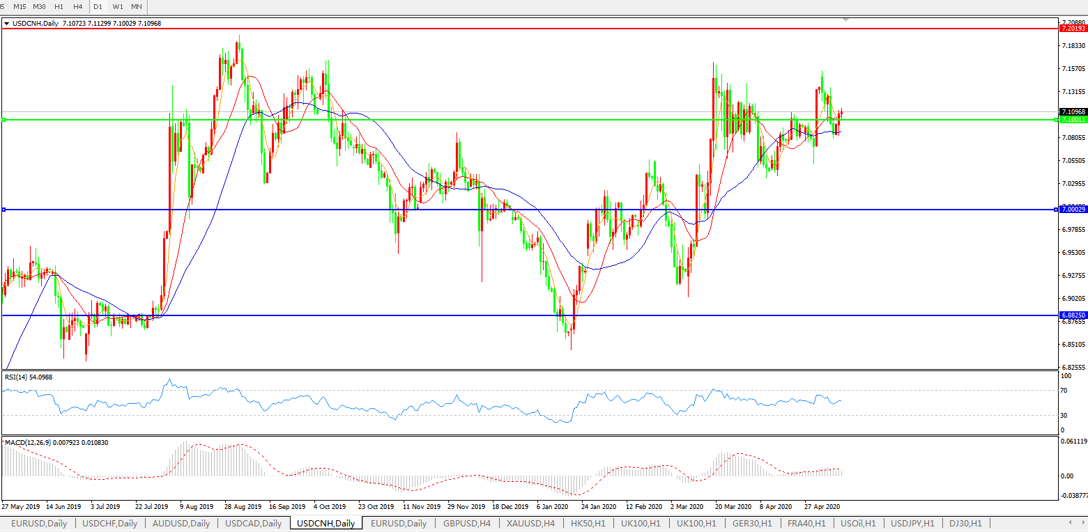 交易策略: 在7.1000之上,看涨,目标价位为7.2000,然后为7.3000。