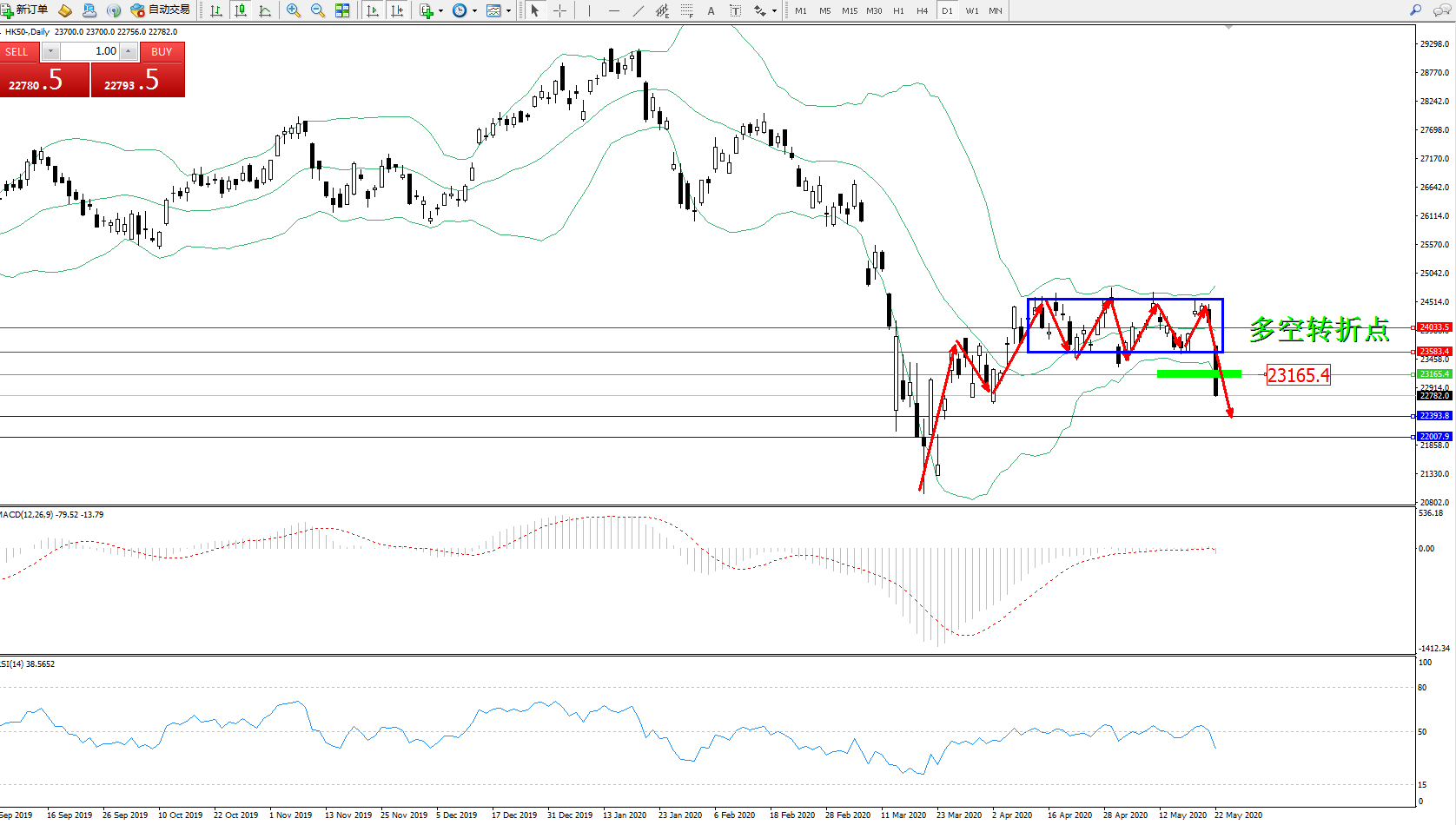 恒指HK50 ——日K线图显示: