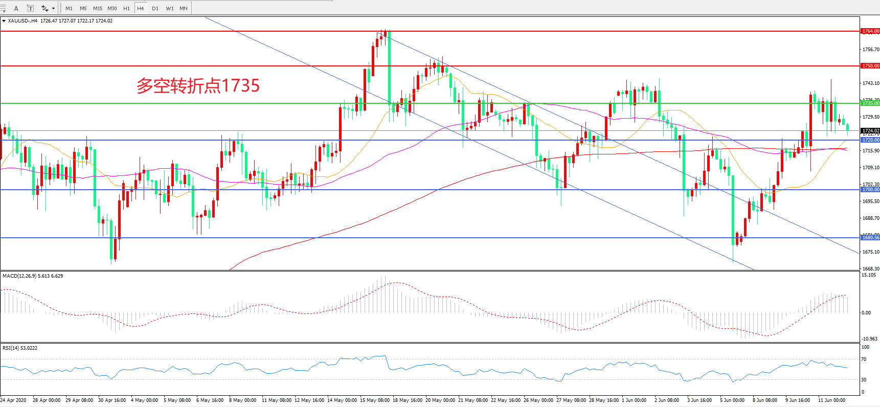 多空转折点:1735.00