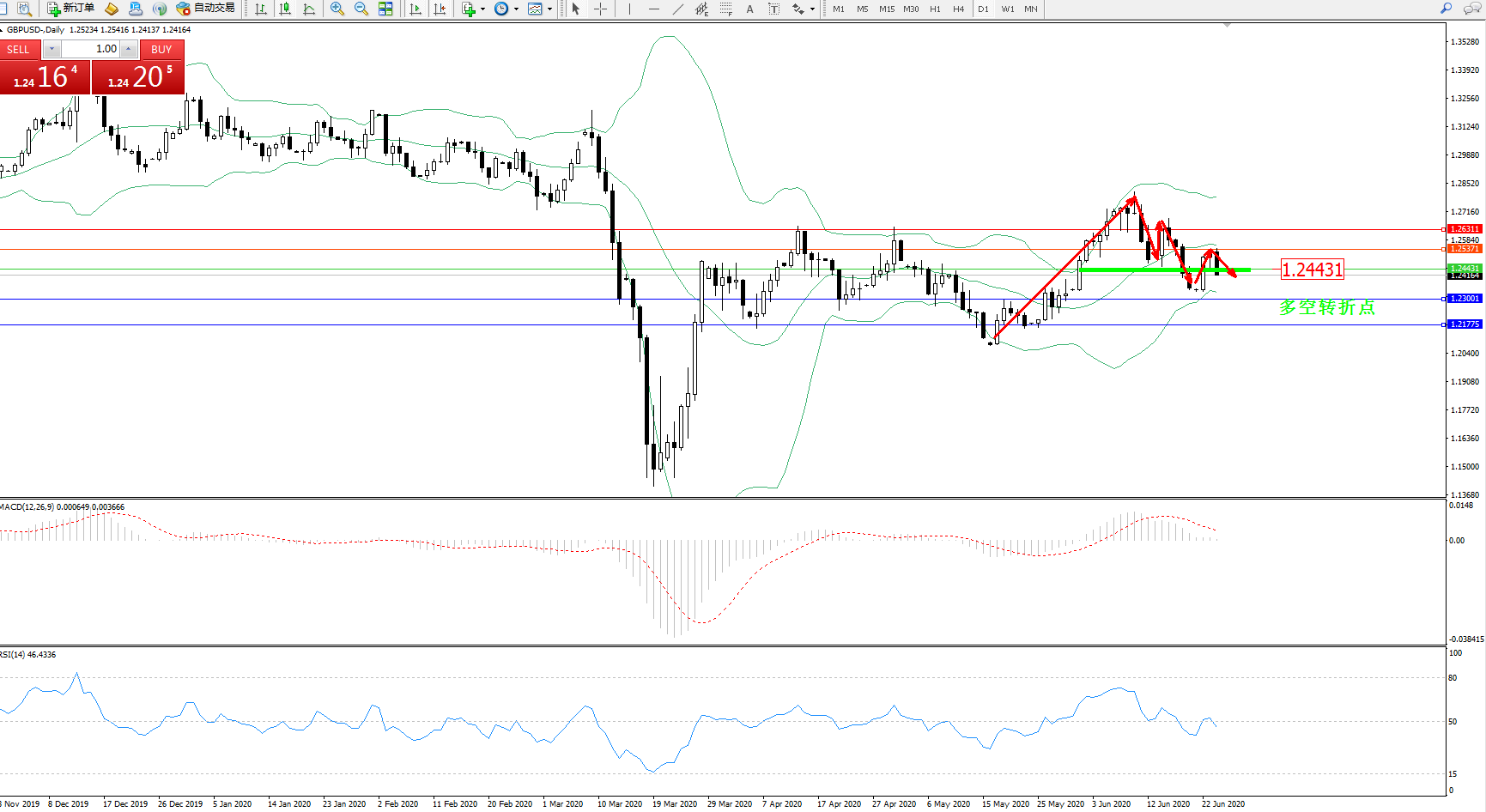 交易策略:1.24431下方看跌,目标1.230011.21775