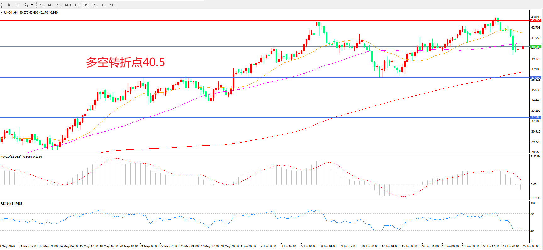 周三(6月24日),因EIA原油库存再创新高,美国多州新增病例反弹,疫情二次爆发的威胁打击了需求前景,布伦特原油大幅下挫,收报40.28美元/桶。根据美国能源信息署公布的数据,美国除却战略储备的商业原油库存增加144.2万桶至5.407亿桶,美国国内原油产量连续11周录得下滑后首次录得增长,布油短线下挫,跌幅超过3%。