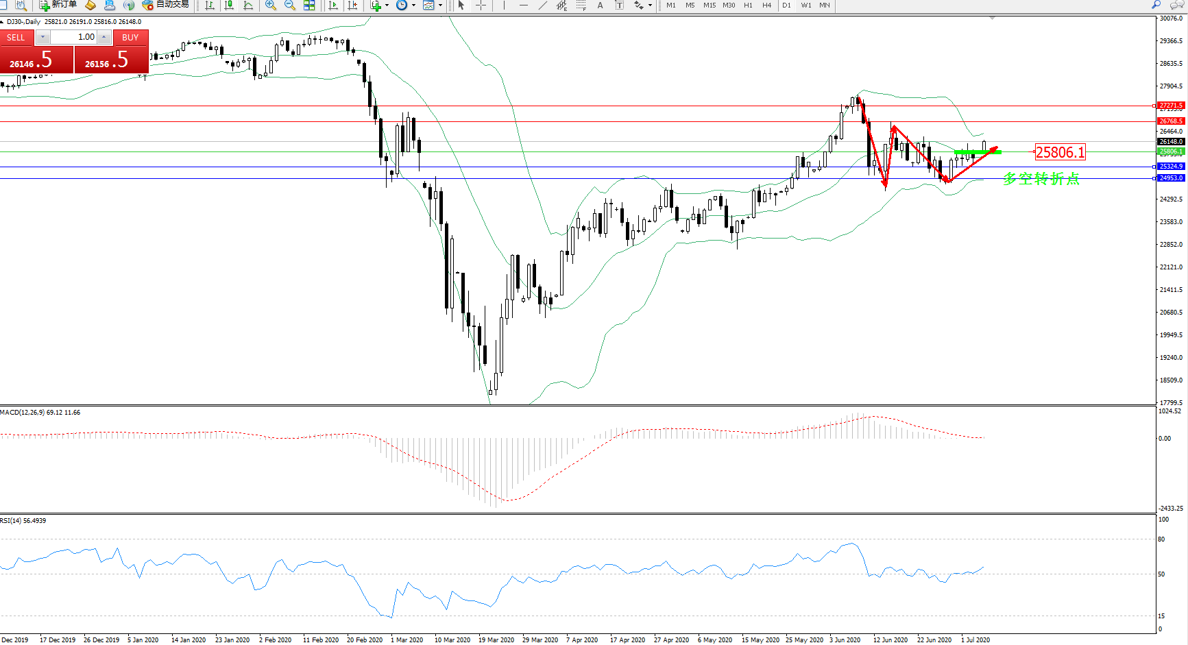 道琼斯指数7月6日(周一)收盘上涨459.70点,涨幅1.78%,报26287.03点。美国股市收高,科技股涨势推动纳斯达克综合指数再创历史新高。中国上证综指周一创下近五年最大升幅,推动全球股市看涨情绪升温,尽管投资者仍然对美国新冠病例激增保持警惕。投资者意识到,美国经济形势并不像3、4月份时候那么糟糕,市场已经开始感觉到,公司业绩可能广泛好于预期。MSCI世界指数升至6月初以来的最高水平,投资者对空前刺激措施推动的经济复苏抱有信心。但是,经济恢复正常仍有很长的路要走。高盛下调了本季度美国经济增长预期,并表示消费支出可能在7、8月份停滞。