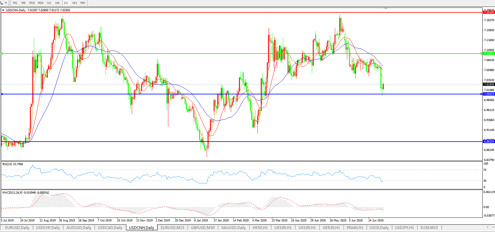 央行落实保障实体经济措施,美元人民币7.0关口存支撑