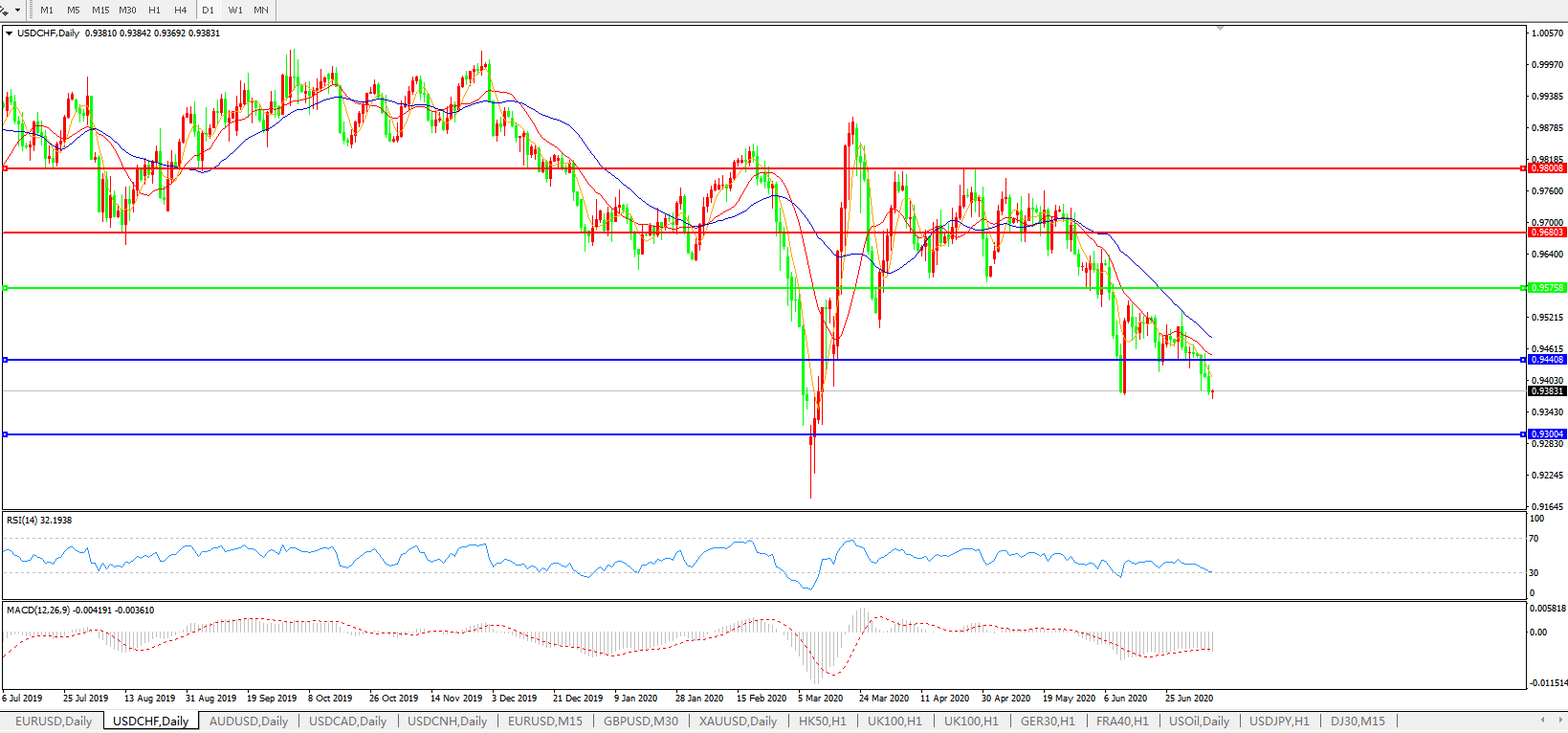 美元兑瑞郎USDCHF 日线图: