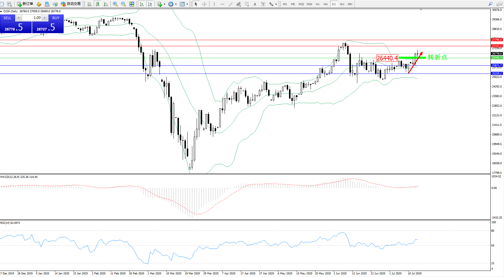 道琼斯指数7月15日(周三)收盘上涨227.40点,涨幅0.85%,报26870.03点。美股三大指数集体收涨,对新冠疫苗的乐观情绪推动美国股市升至一个多月高位;病毒疫苗激发了更多看涨情绪,忘记估值,忘记收益,忘记经济新闻。Moderna实验性新冠疫苗在一项正在进行的早期研究中表明其是安全的,全部45名健康志愿者体内都出现免疫反应,这带动了市场的冒险情绪。但随着贸易关系不断恶化,对美国第二波冠状病毒感染影响经济的担忧,仍令市场有理由保持谨慎。