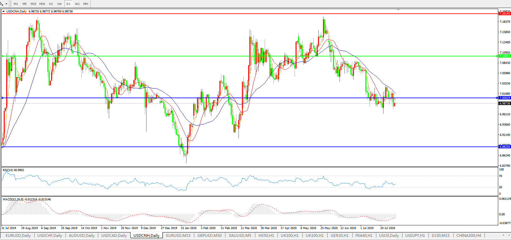 交易策略: 在7.1000之下,看跌,目标价位为7.0000,然后为6.8820。
