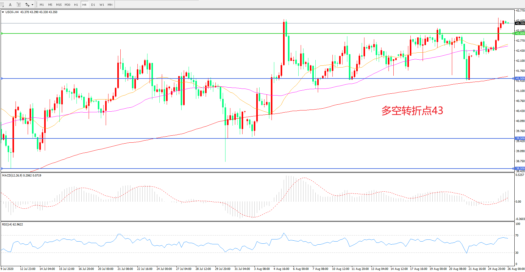 交易策略:在43.50之上看涨,目标46.00 49.50