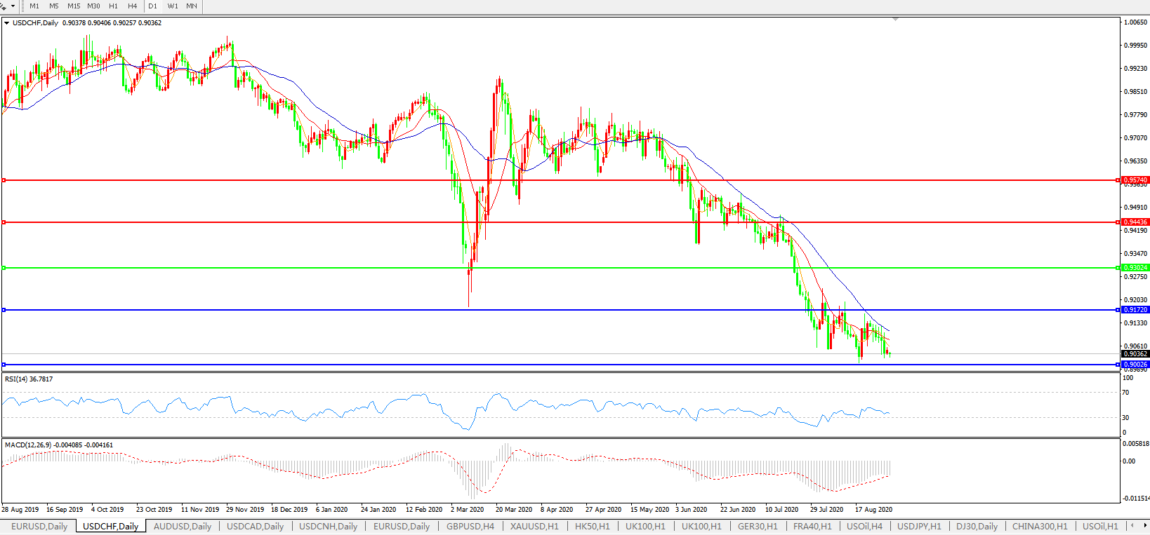 美元兑瑞郎USDCHF 日线图: