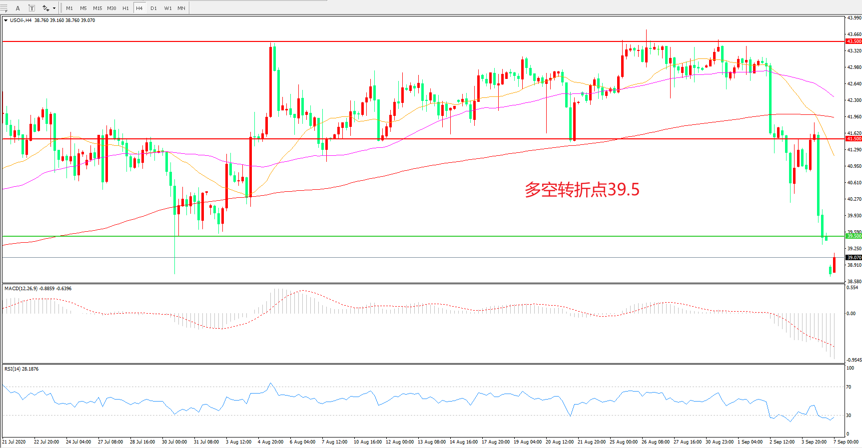 交易策略: 在39.50之下看跌,目标37.00 35.00