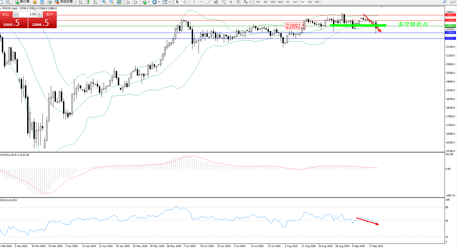 日经225指数9月18日(周五)收盘上涨28.13点,涨幅0.12%,报23347.50点。亚洲股市大幅走高,日本政府周五报告,8月不包括生鲜食品的CPI同比跌0.4%,经过两个月持平后再度恢复跌势,凸显了日本央行和新首相菅义伟面对新冠疫情努力提振通胀所面临的艰巨挑战。在新冠疫情和能源市场疲软的情况下,日本政府鼓励“出行”的折扣措施给已经疲弱的消费价格增加了下行压力。预计下一季度消费物价将进一步下跌,因为去年10月份开始消费税上调2个百分点所产生的积极基数效应将消失日本新冠疫情近几周来缓解,东京地区降低了疫情警告水平,并将在下个月加入全国鼓励出行的活动,此举可能会增加支出,但会令通胀进一步承压。