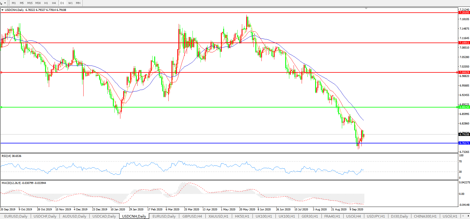 技术面简析:日图均线整体呈空头排列但短期均线快速走强,汇价止跌后开始整理,MACD运行于0轴下方但量能微缩量,RSI开始回升,预计短期汇价大概率将在骤跌后整理修正,中期汇价料继续下行。
