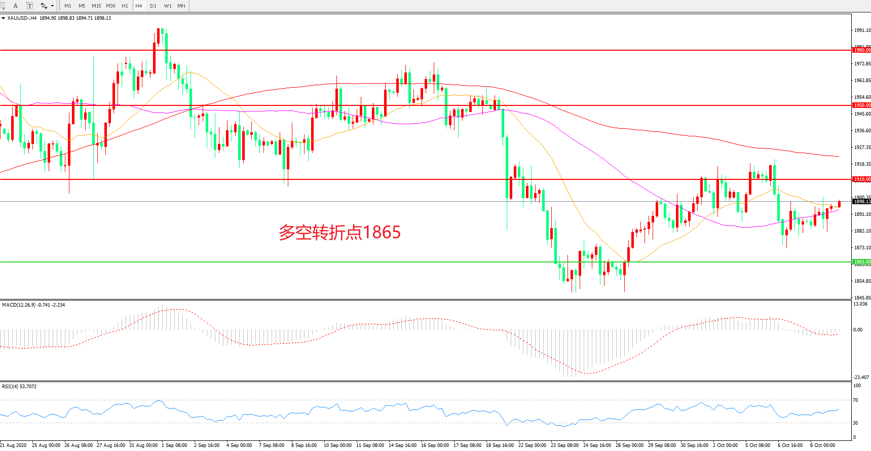 周四(10月8日),特朗普发表全国电视讲话,声称谈判已经重新开始,政府和民主党“进行了一些非常富有成效的会谈”,但随后众议院议长佩洛西表示,如果没有更广泛的新冠病毒援助方案,她将不会支持一项独立的航空公司救济法案。美元指数探底回升,现货黄金延续低位震荡后收报1897.83美元/盎司。