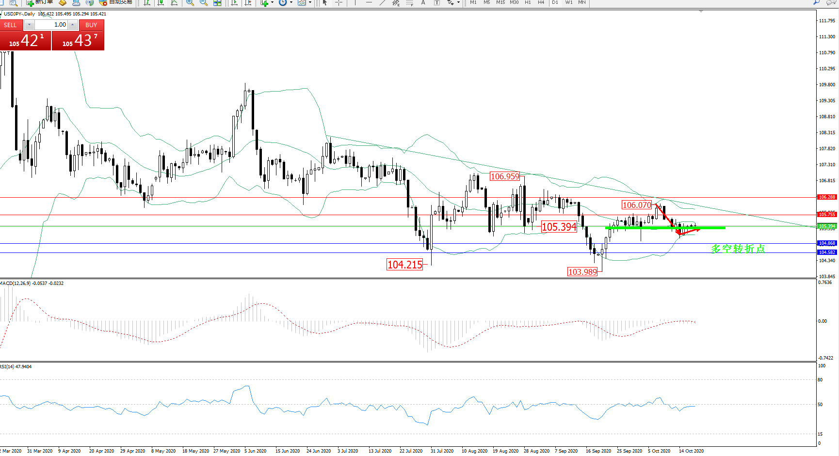 多空转折点:105.394
