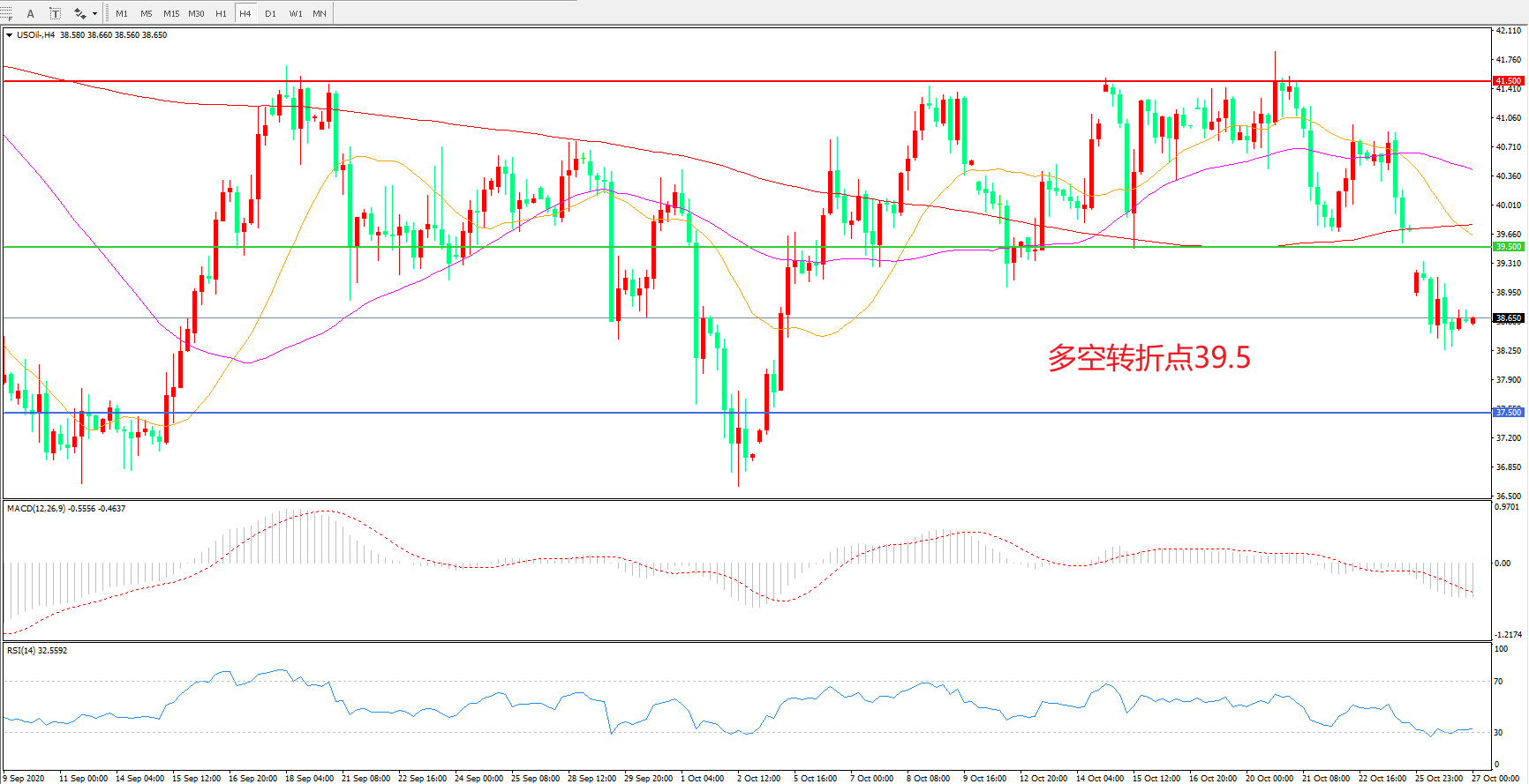 交易策略: 在39.50之下看跌,目标37.50 35.00