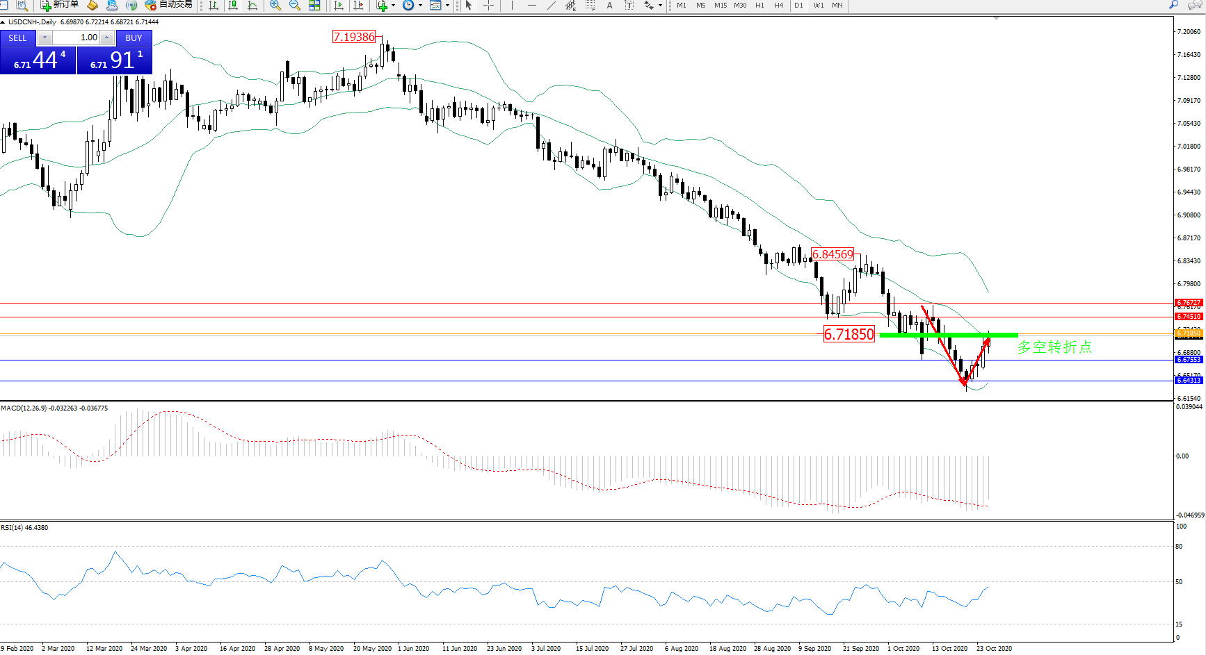 备选策略:6.71850上方看涨,目标6.74510、6.76727