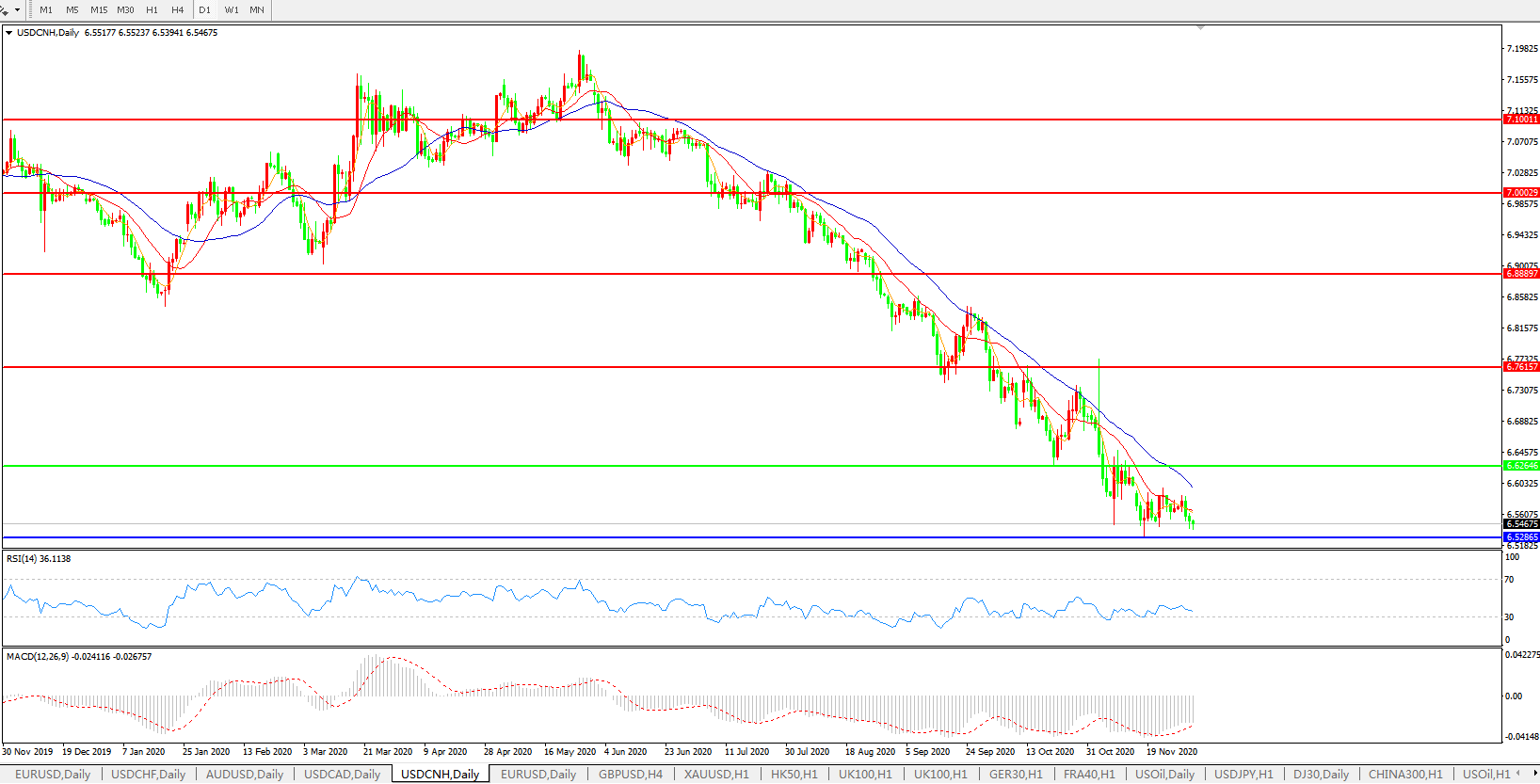 疫苗及刺激计划提振风险,美元兑人民币继续走弱