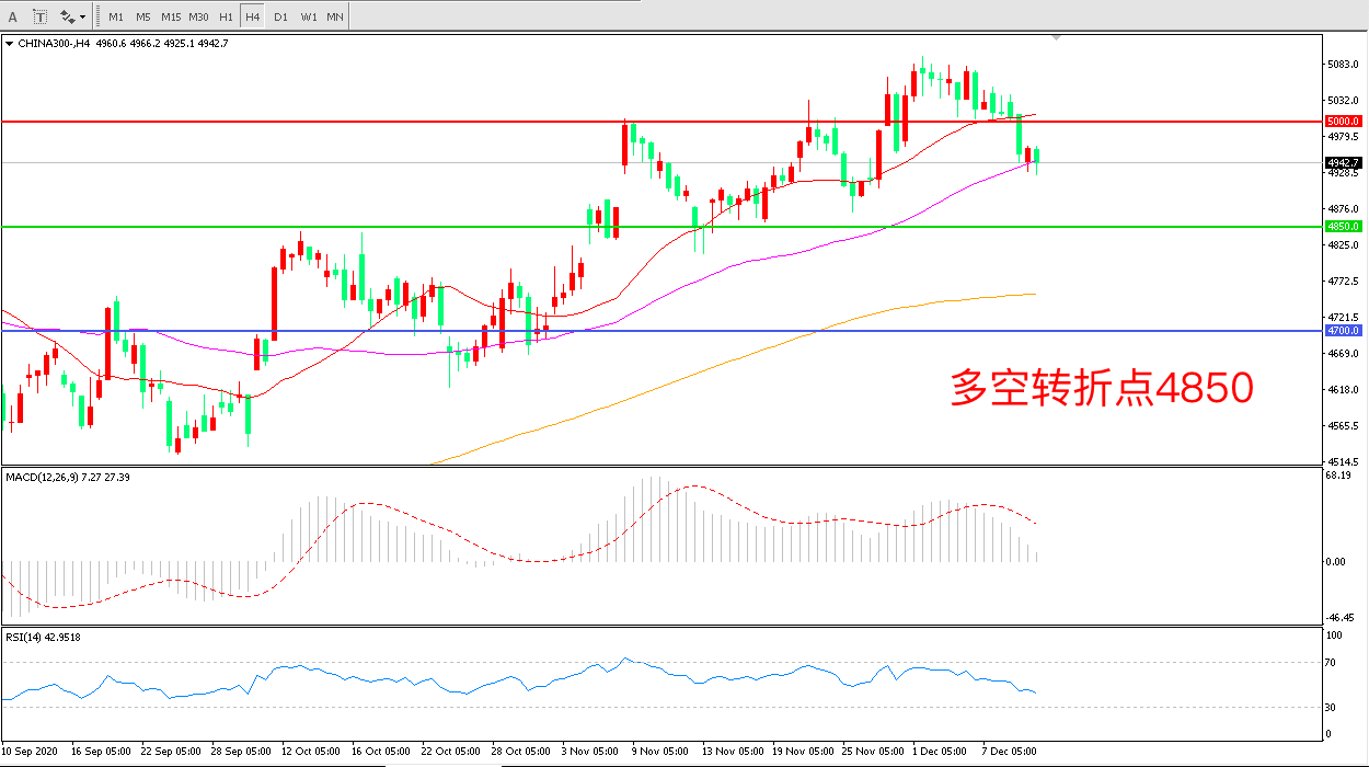 交易策略:在4850.00之上看涨,目标5000.00       5150.00