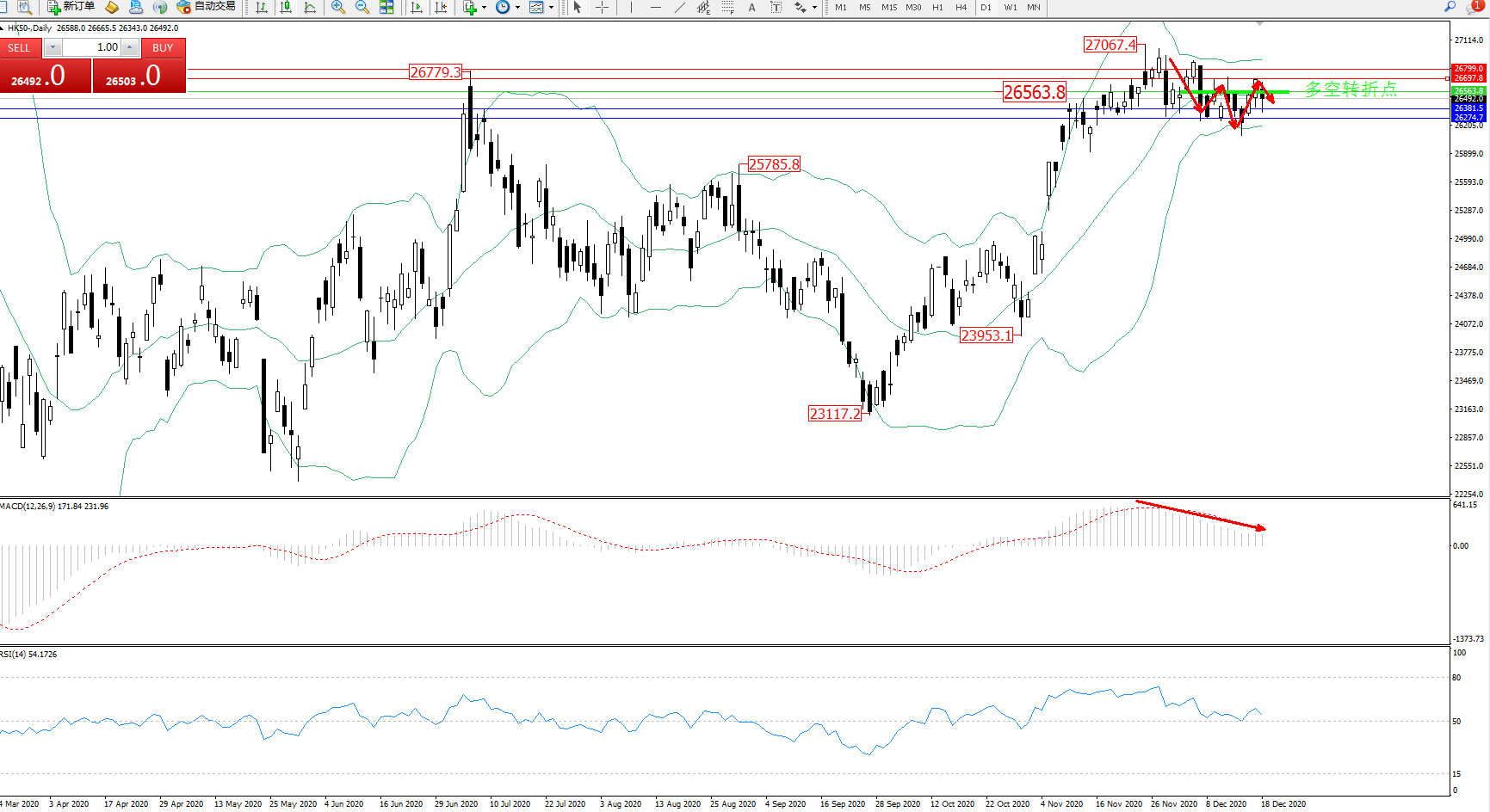 香港恒生指数12月18日(周五)收盘下跌179.78点,跌幅0.67%,报26498.6点;恒指本周累跌0.03% 黄金、光伏、煤炭涨幅居前,港股主要指数全线收跌,市场整体情绪表现疲弱。恒生科技指数跌0.95%,型科技股、蓝筹地产股、银行股、保险股、中资券商股全日低迷拖累大市下挫;恒生科技股涨跌各半,惟权重股美团、阿里、京东等均下跌,中芯国际更是跌超5%。今日南下资金净流入6.71亿港元,大市成交额为1664.74亿港元。美国将在周五将数十家中国企业列入贸易黑名单,其中包括中国芯片制造商中芯国际(SMIC)。路透社指出,这一此前从未被报道过的举动,被视为美国总统特朗普巩固其对华强硬政策遗产的最新努力。发言人汪文斌表示,如果你说的消息属实,这将是美国动用国家力量打压中国企业的又一力证,中方对此坚决反对。
