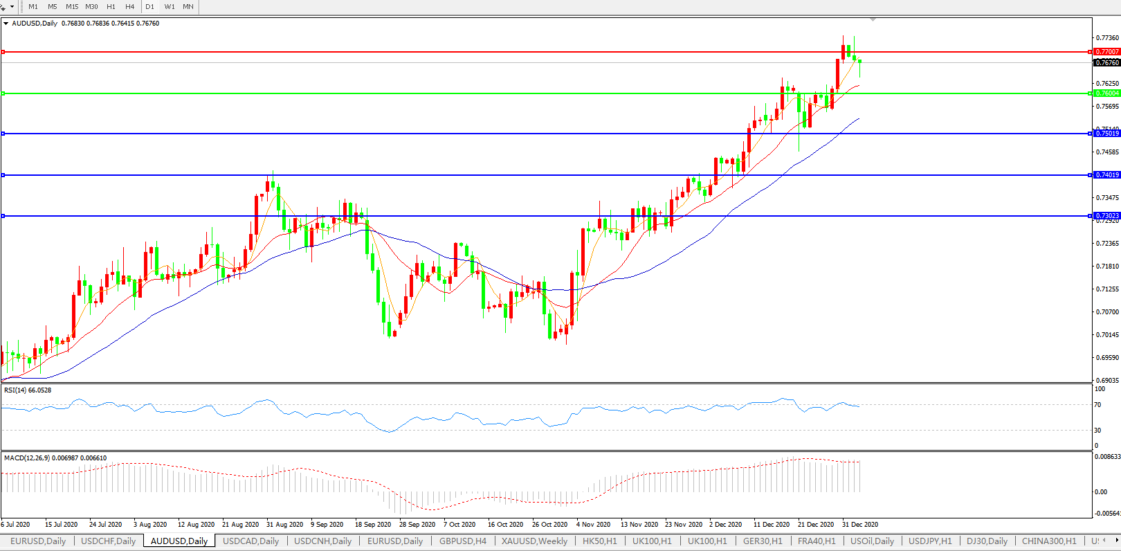 交易策略:0.7600上方看涨,目标0.7700、0.7800