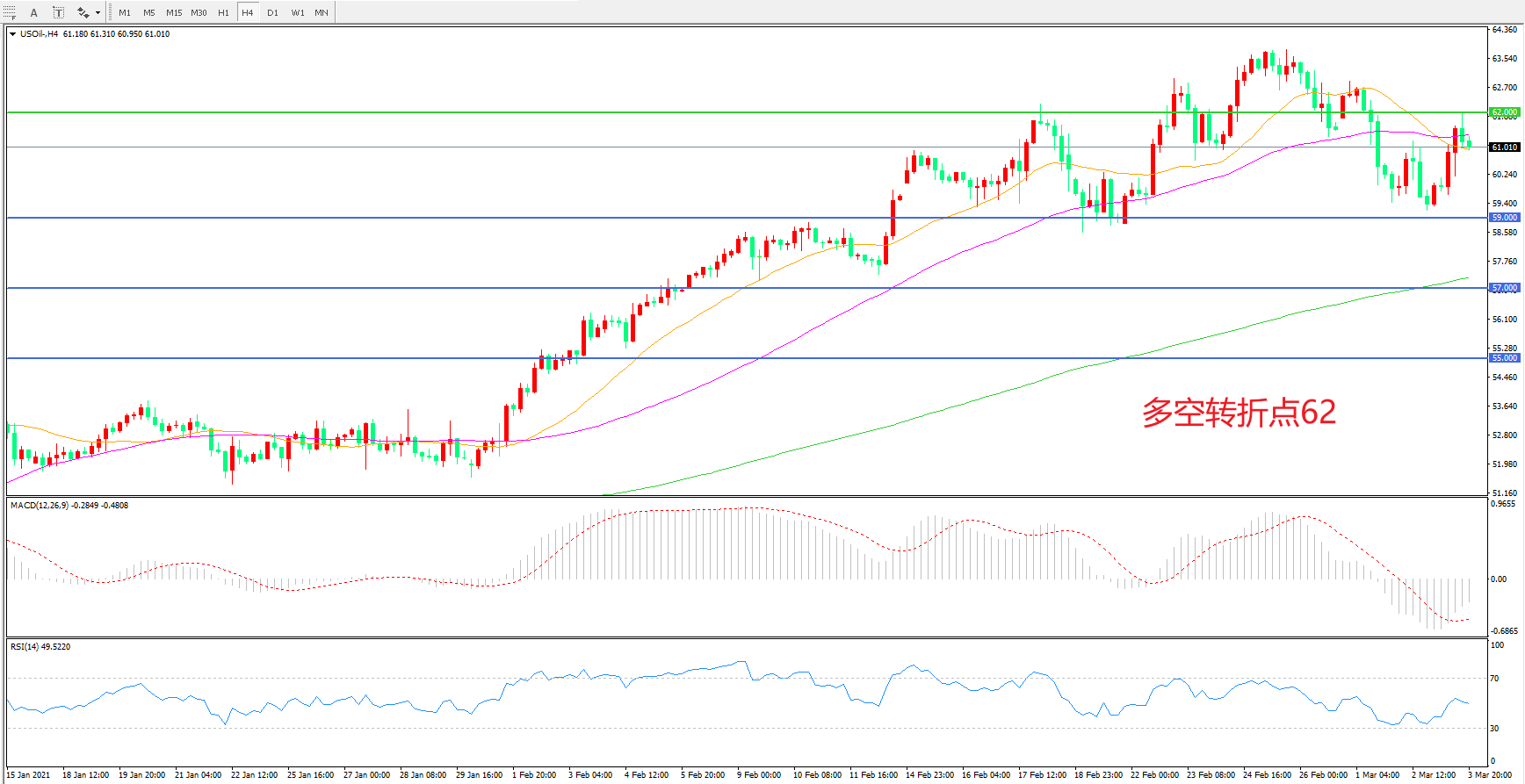 周三(3月3日),根据美国能源信息署公布的数据显示,当周EIA原油库存大增2156.3万桶,远超市场预期。数据公布后,美油一度急挫,但伊拉克美军基地突然遭受袭令中东局势骤然紧张,WTI原油短线暴拉,最终收报61.03美元/桶。目前俄罗斯刚刚被制裁,沙特也因为记者谋杀案而与美国发生了矛盾,结合这些事件来看,混乱的局势可能刚刚开始。