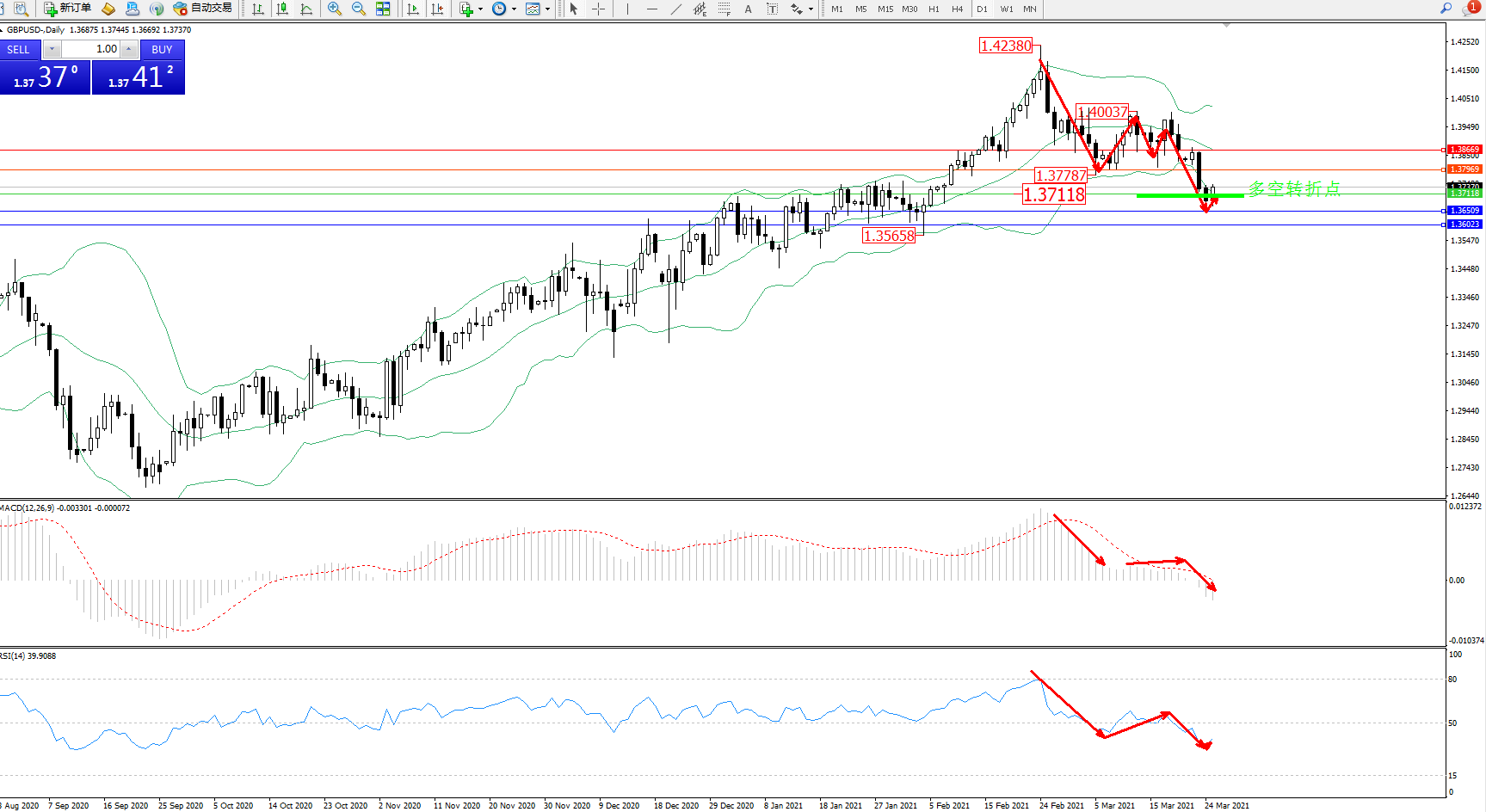 交易策略:1.37118上方看涨,目标1.37969、1.38669