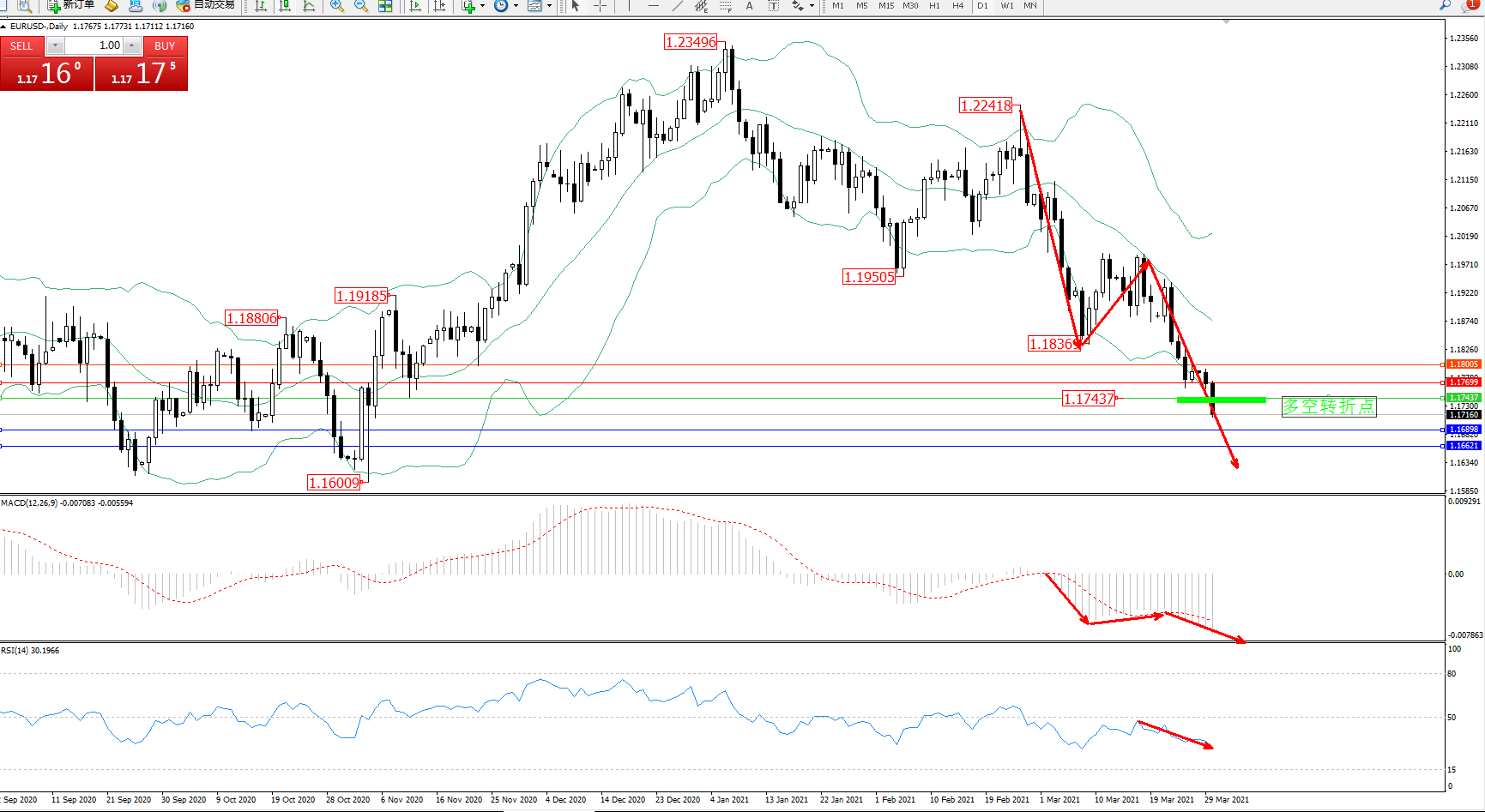 交易策略:1.17437下方看跌,目标1.16898、1.16621