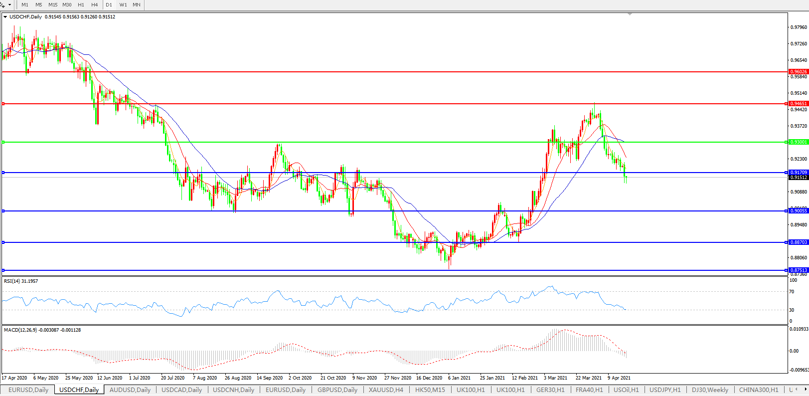 交易策略:0.9300下方看跌,目标0.9170、0.9000