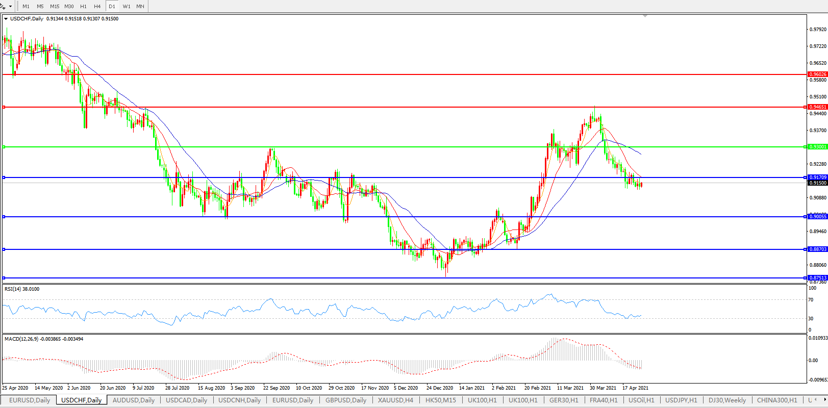 交易策略:0.9300下方看跌,目标0.9170、0.9000