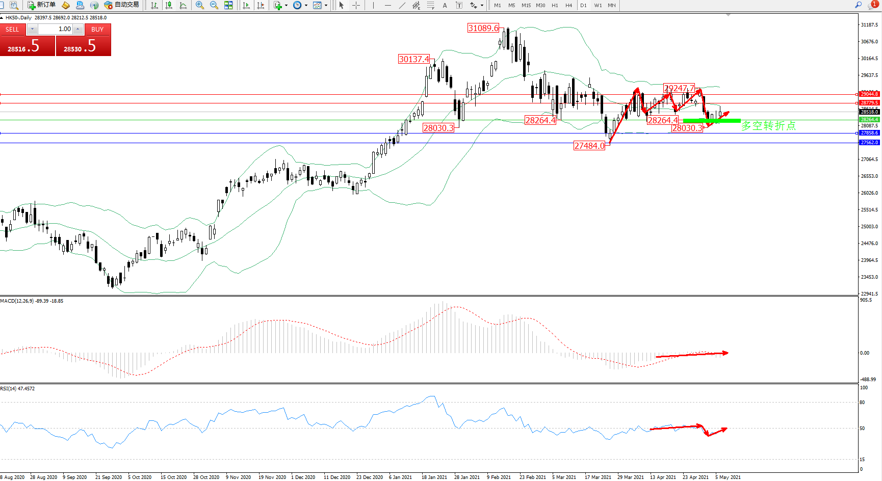 香港恒生指数5月6日(周四)收盘上涨219.48点,涨幅0.77%,报28637.46点;港股主要指数收涨,早盘三大指数高开,盘中曾跳水转跌。恒生科技指数涨0.36%报8136点。国宣布放弃mRNA新冠疫苗知识产权,近期表现强势的生物疫苗股全线大跌,复星医药盘中暴跌26%,开拓药业、中国生物制药等重挫;餐饮股、教育股、影视娱乐股走低明显。大型科技股小米涨超3%,阿里巴巴、快手小幅收涨。大市成交额放量至1610亿港元,南下资金净流入19.1亿港元。南下资金今日净卖出港股3.75亿港元,其中沪市港股通净卖出14.13亿港元,深市港股通净买入10.37亿港元。净卖出前三个股为美团-W、腾讯控股、舜宇光学科技,分别遭净卖出7.8亿港元、2.18亿港元、1.91亿港元。小米集团-W、中国海洋石油、李宁净买入额位列前三,分别获净买入11.39亿港元、4.55亿港元、4.31亿港元。香港政府发言人表示,食肆总收益价值的按年跌幅在今年第一季收窄至8.8%,主要是比较基数较低所致。由于本地第四波疫情减退,业务状况在2月及3月逐步从1月时困难的情况改善。然而,3月的食肆总收益仍远低于2019冠状病毒病疫情大流行前的水平。发言人进一步指出,由于本地就业和收入状况仍然显著受压,访港旅游业持续低迷,食肆的经营环境在短期内仍将充满挑战。