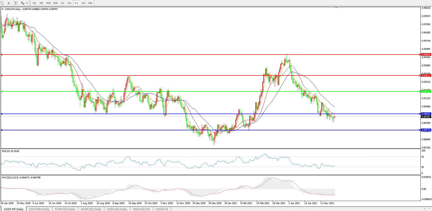 美元兑瑞郎USDCHF 日线图: