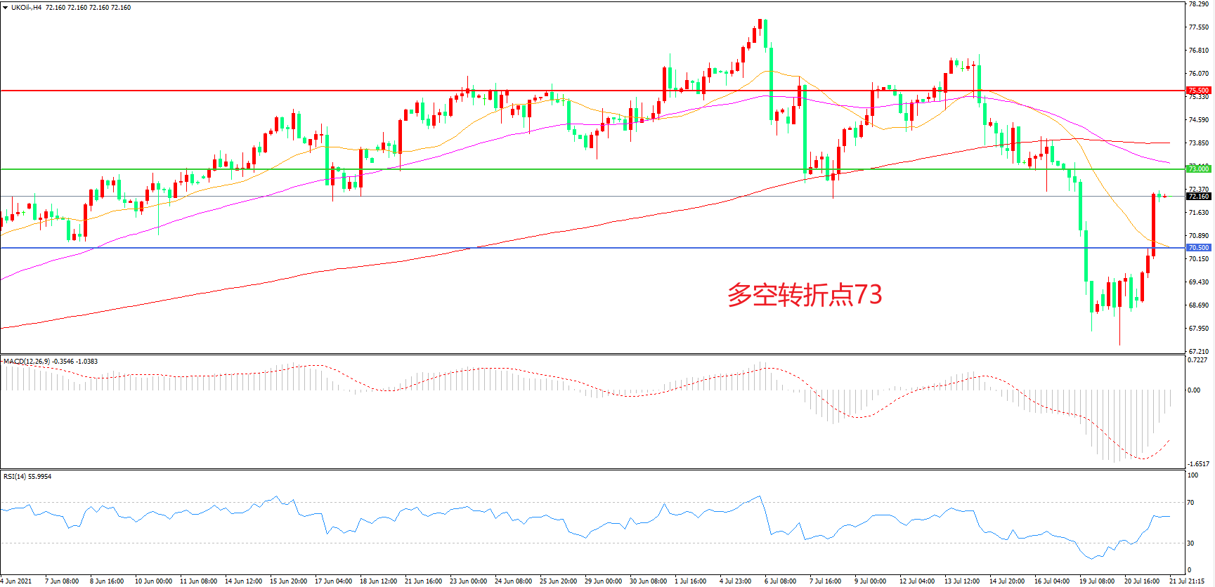 交易策略:在73.00之下看跌,目标70.50 66.50