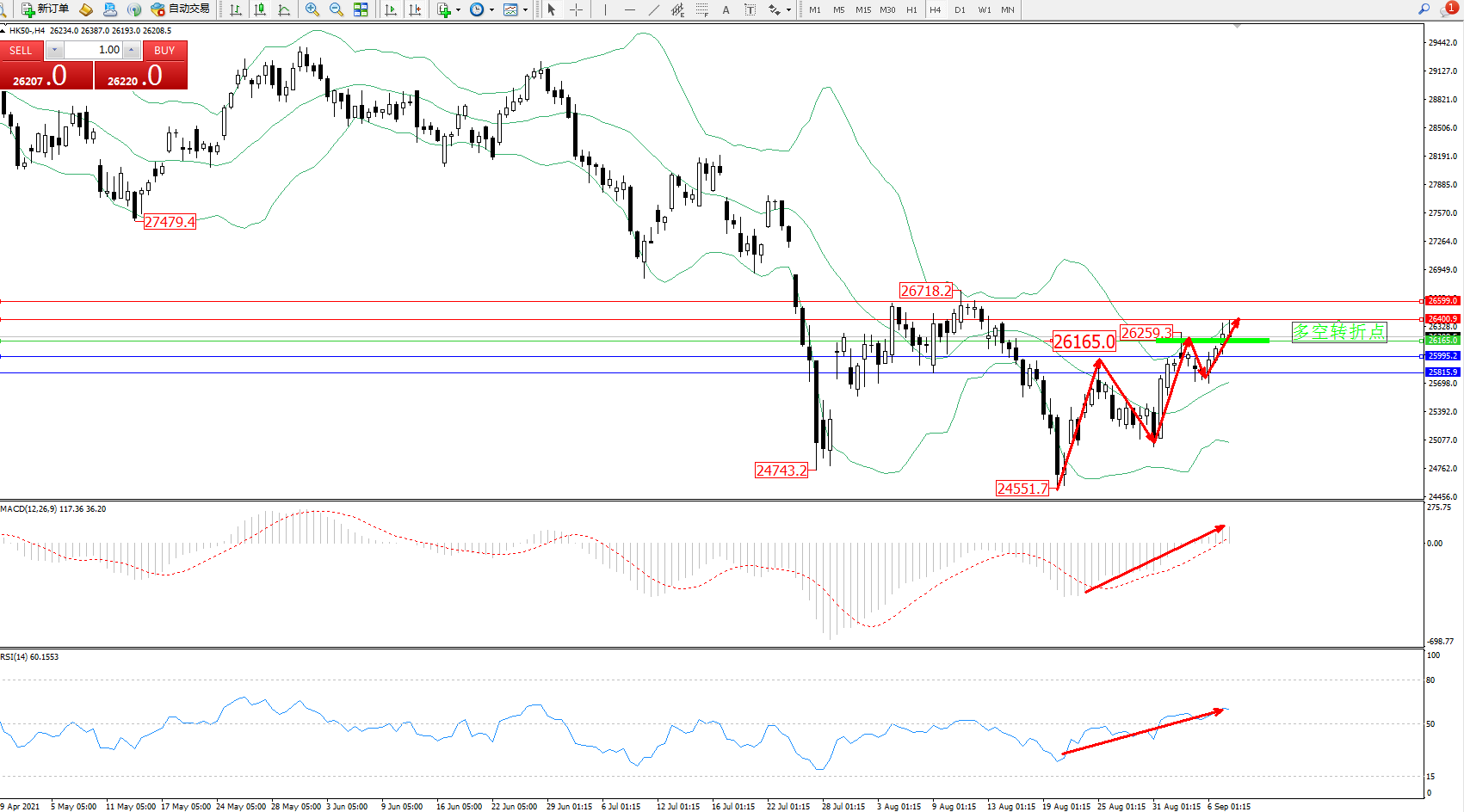交易策略:26165上方看涨,目标26400、26599