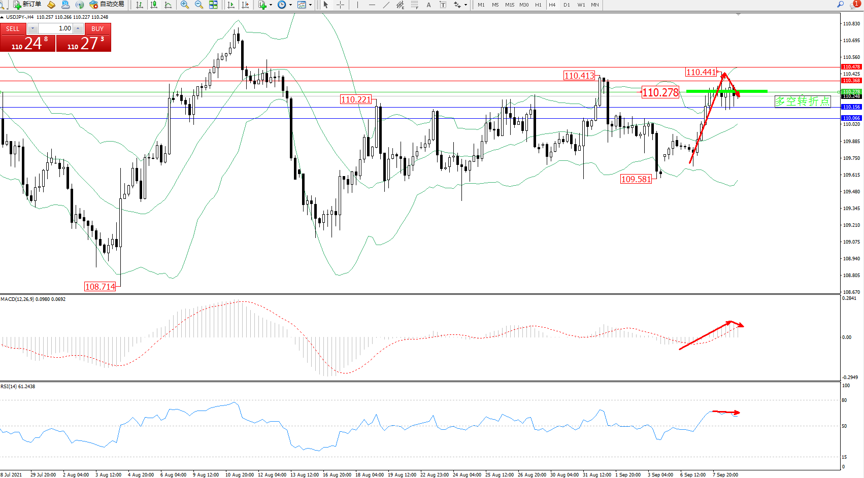 技术点评:低位多头动力强势拉升,高位抵达110.441位置后遇阻开始震荡,纠结于布林带指标中上轨区间窄幅整理中,布林带指标呈收口走势中,短期或维持高位持续徘徊,MACD指标处于多头区域维持整理平移中,RSI指标处于多头区域维持弱势徘徊;