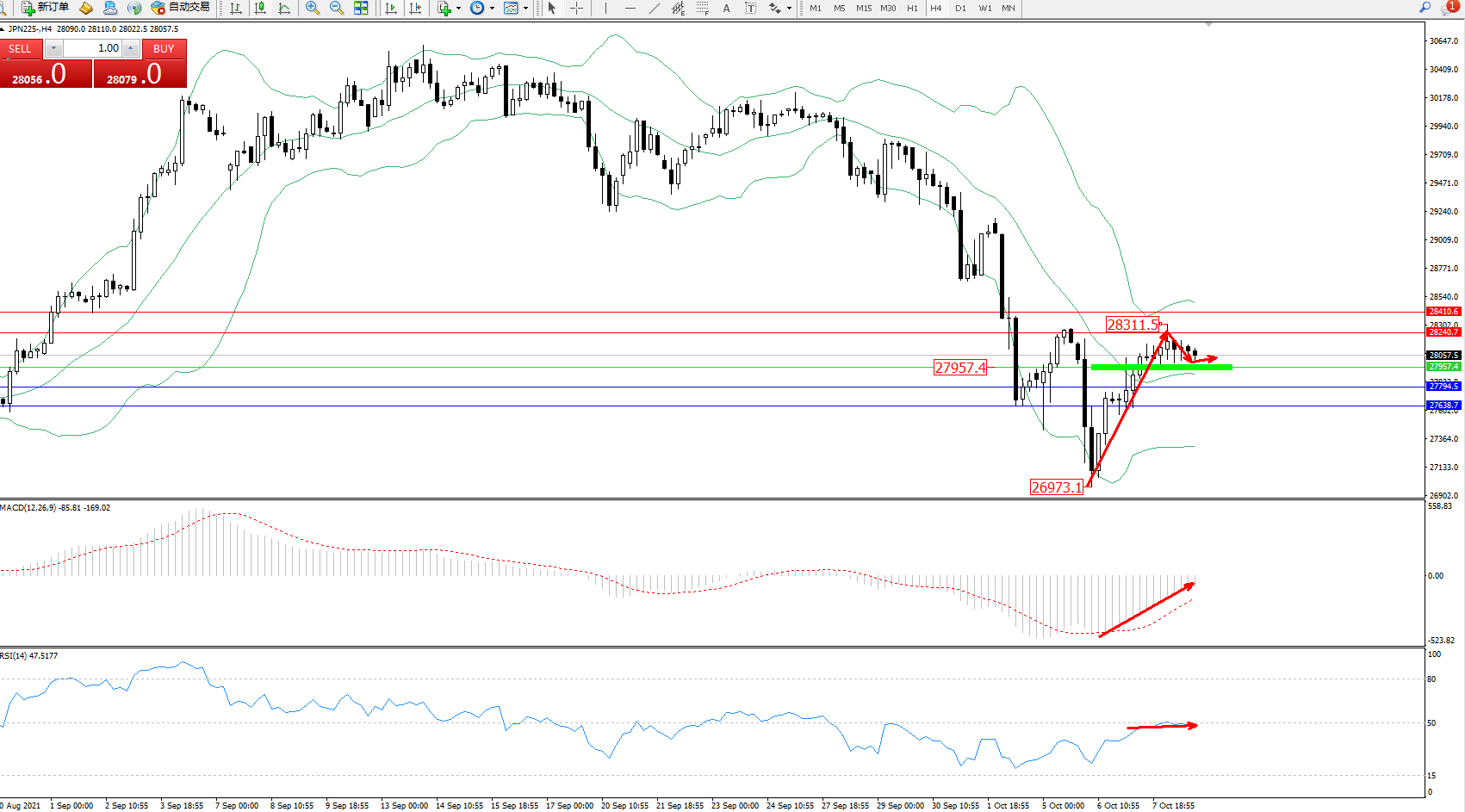 日经指数JPN225——4小时K线图显示: