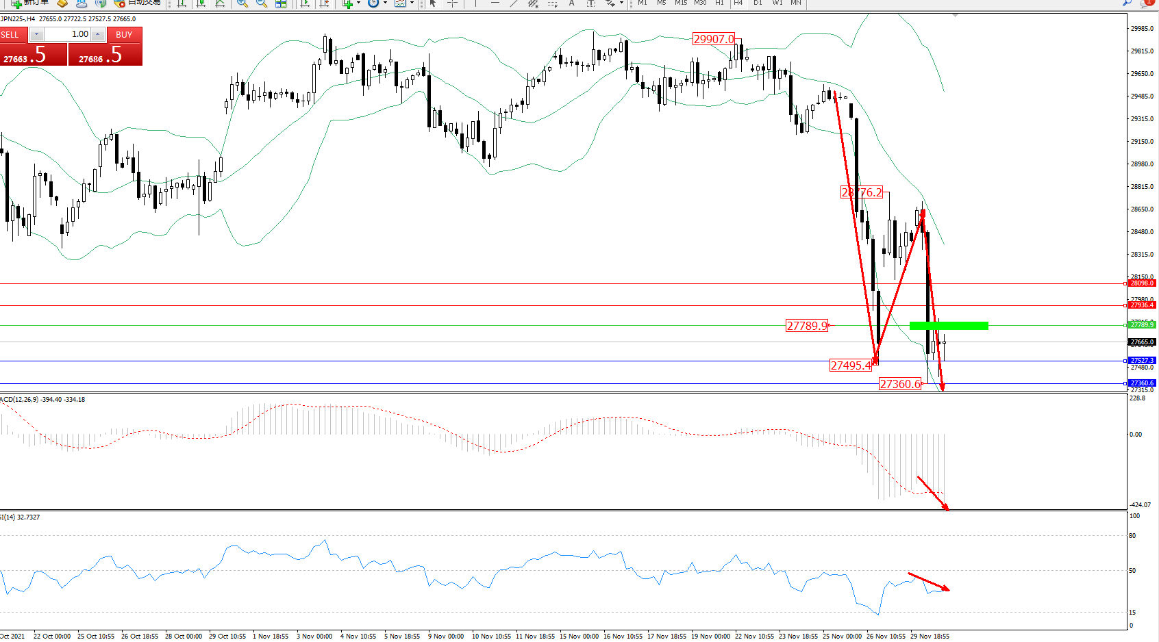 日经225指数11月30日(周二)收盘下跌471.42点,跌幅1.67%,报27812.50点。市场消息:日本厚生劳动省将于(北京时间)下午5点针对奥密克戎毒株感染病例进行通报。日本内阁官房长官松野博一:尚未有关于奥密克戎毒株检测呈阳性的其他报告。日本卫生大臣:感染奥密克戎变异株的旅行者是来自纳米比亚的外交官。与感染旅客在同一架飞机上的所有71名乘客将被视为密切接触者。所有密切接触者将每两天接受一次新冠检测。