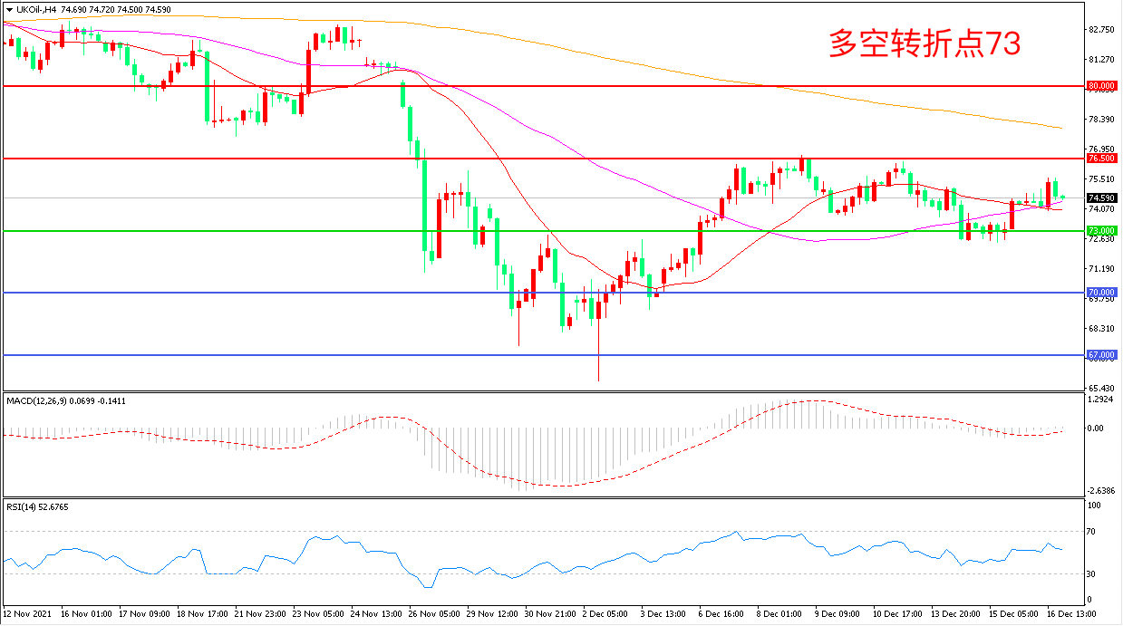 交易策略:在73.00之上看涨,目标76.50              80.00