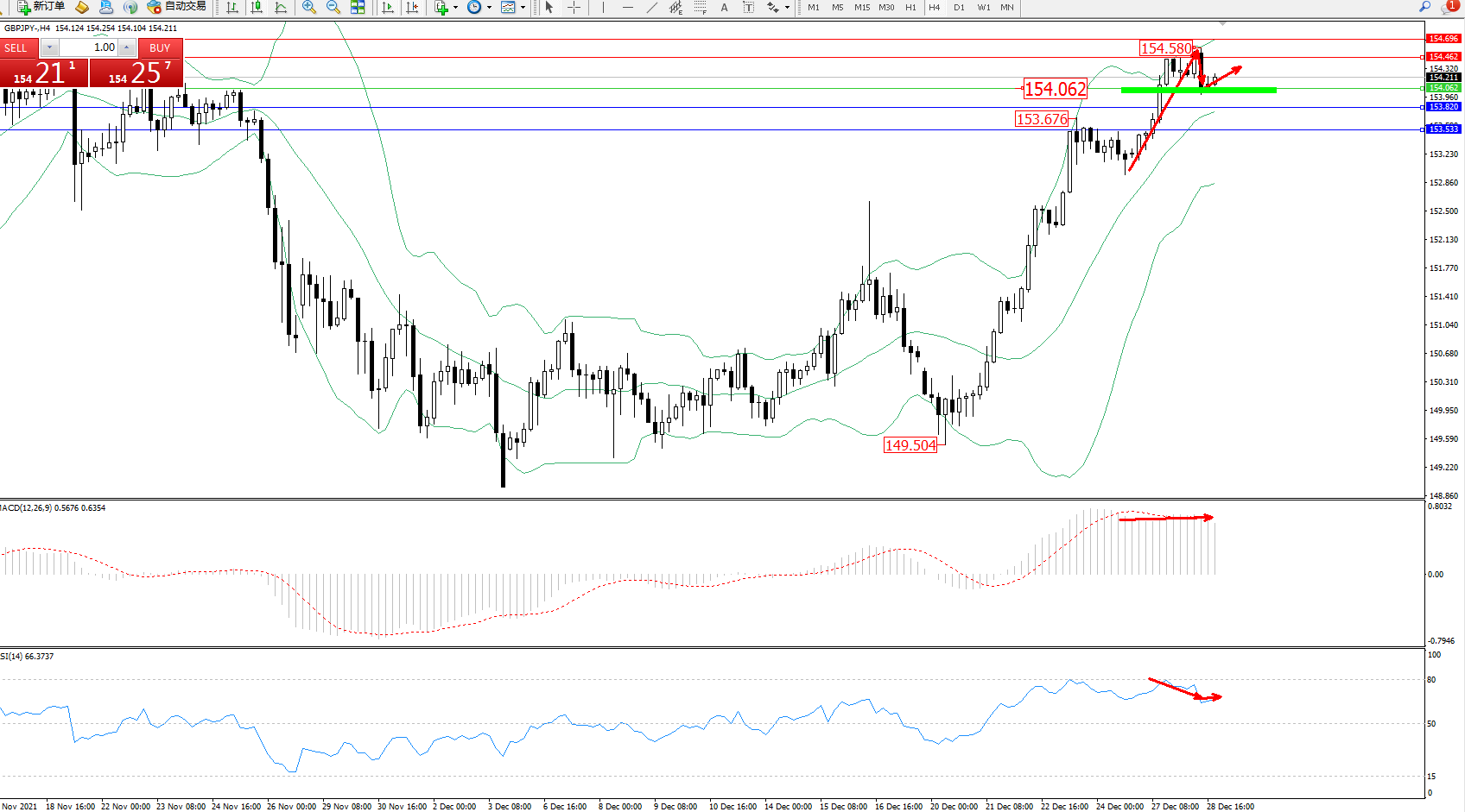 交易策略:154.062上方看涨,目标154.462、154.696