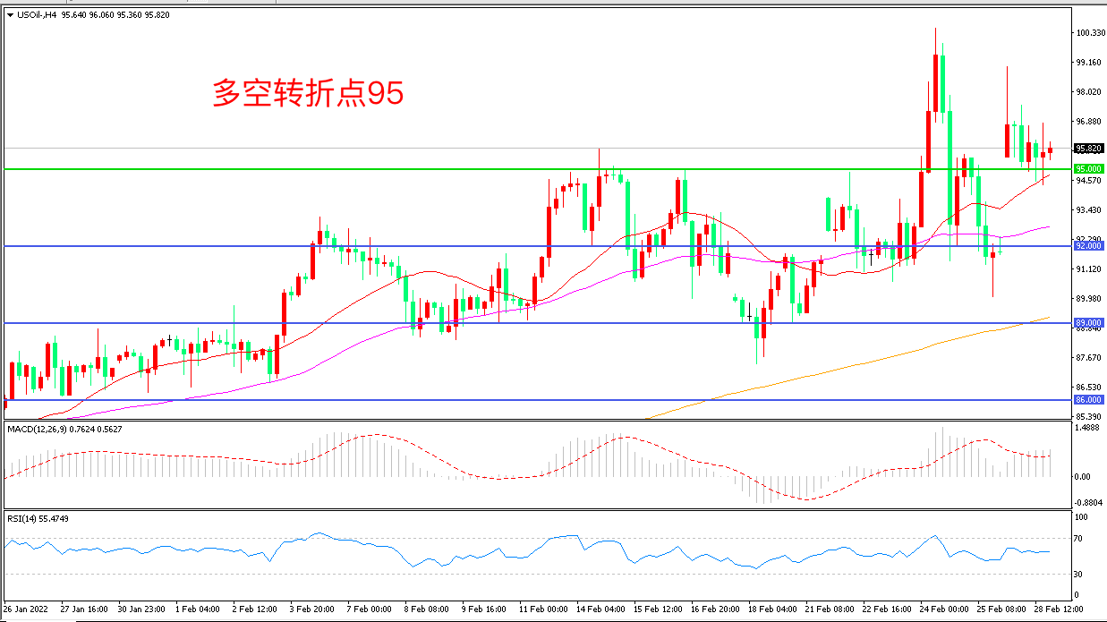 交易策略:在95.00之上看涨,目标98.00 100.00