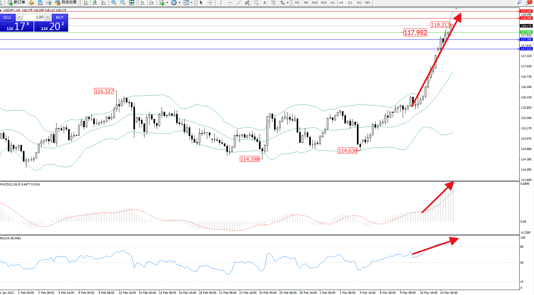 美元兑日圆维持118.175附近震荡,日本央行的鸽派倾向会继续对日元汇率造成打压;而不断上涨的能源成本也将对日本贸易条件产生负面影响,进一步打压日圆走势。受央行鸽派和大宗商品价格飙升加剧贸易失衡影响,日圆汇率有望进一步下滑;市场分析认为,与预期的美联储加息相比,日本央行的鸽派倾向会继续对日圆汇率造成打压。而不断上涨的能源成本也将对日本贸易条件产生负面影响,从而进一步打压日圆走势。美联储将在本周召开货币政策会议,市场普遍预计美联储将在本次会议上开启加息。相比之下,日本央行将在本周的会议上保持鸽派立场,因为政策制定者试图推动该国从疫情中疲弱的经济复苏。
