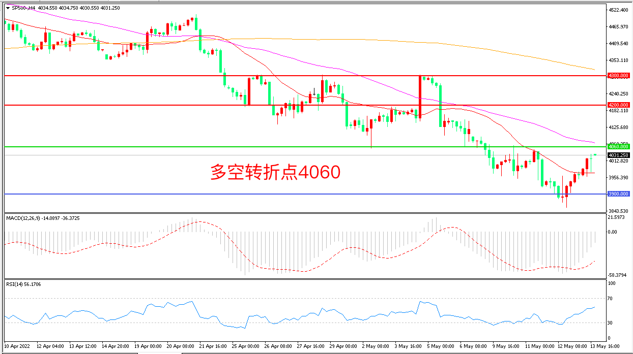 上周五(5月13日),美联储主席鲍威尔重申“未来两次50个基点加息的可能”, 缓和了市场的更激进加息担忧,科技股成为美股领头羊,标普500大幅反弹,收报4019.05点。中期来看,如果高通胀持续性超预期,联储压通胀引发经济阶段性失速,美股将重演2018年四季度式下跌甚至更糟,该预期结束后才有趋势性机会。