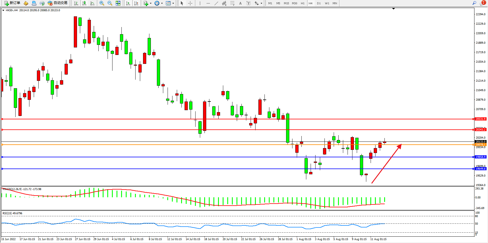 恒指:低位多头震荡拉升 CHINA300  HK50