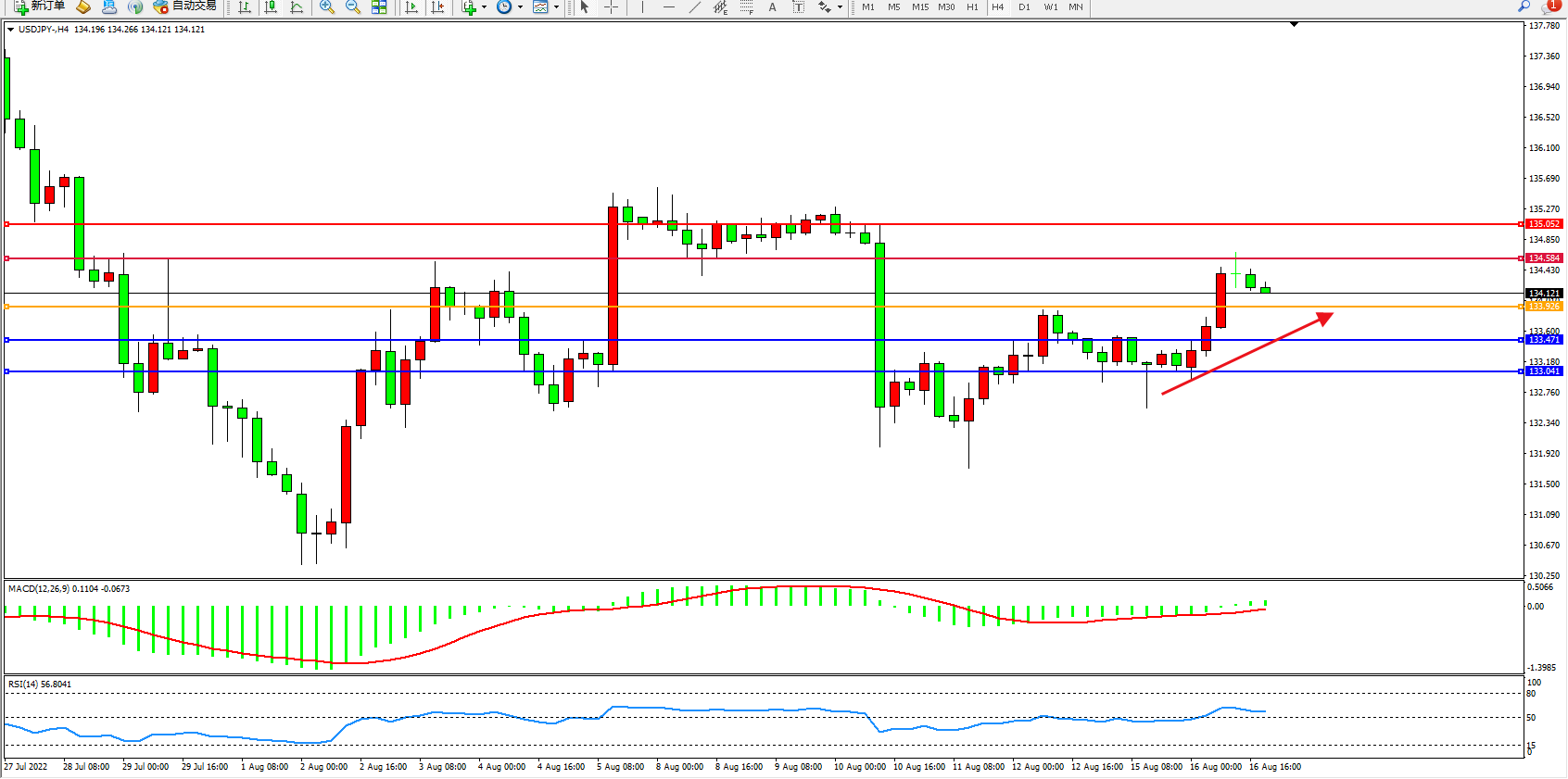 美元兑日圆维持134.121附近震荡, 投资者对美元的需求可能会延续,因美联储加息提振美元和日元利差及对冲成本。美元需求是今年美元兑日USD/JPY走强的另一个因素。