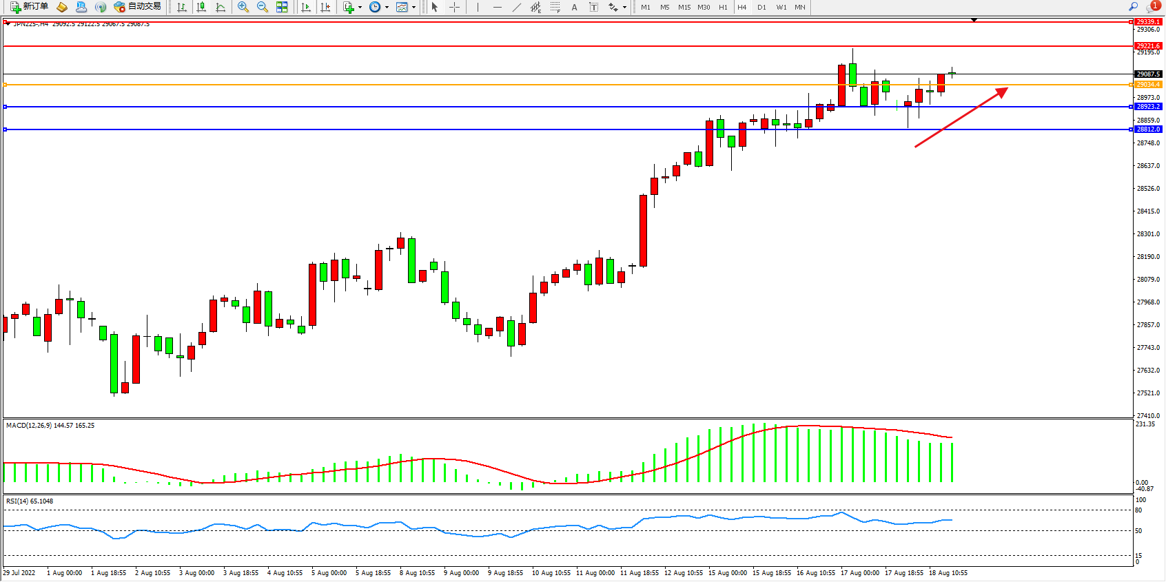 日经225指数8月18日(周四)收盘下跌288.27点,跌幅0.99%,报28934.50点。日本7月剔除生鲜食品的CPI会触及2.4%,此前一个月的预期为2.2%,最新的通胀预期增幅可能暂时不会让日本央行行长黑田东彦摒弃他对宽松立场的坚持。