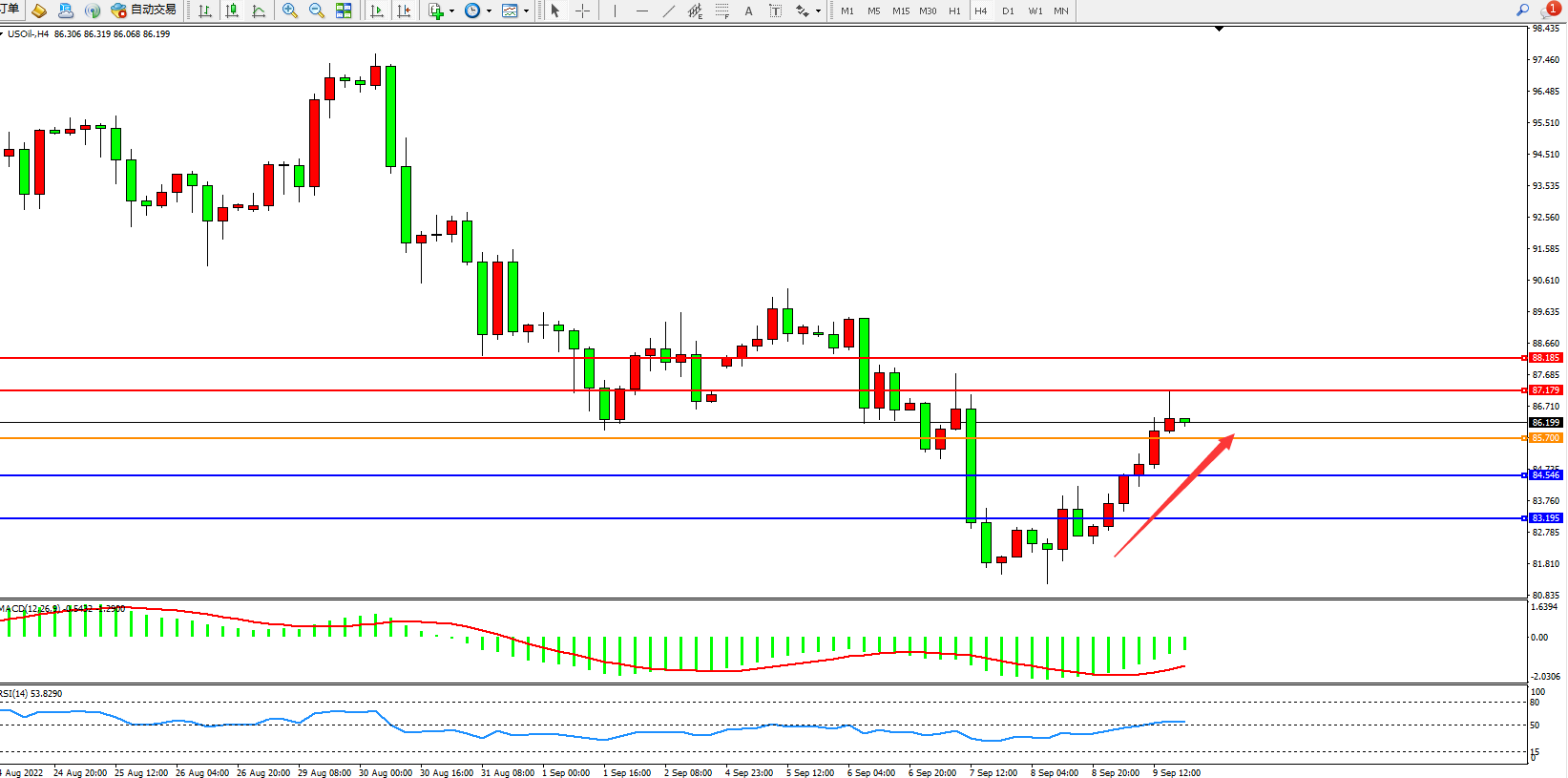 原油维持86.199附近震荡,美国财长耶伦概述了石油价格上限、能源价格方面的措施;美国副总统哈里斯称,价格上限计划的细节将尽快公布。