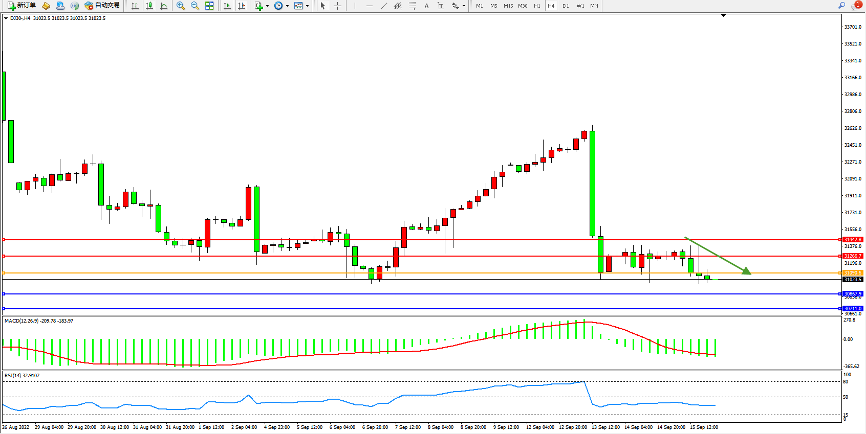 道琼斯指数9月15日(周四)收盘下跌173.07点,跌幅0.56%,报30962.02点;美国失业保险申请人数连续第五周下降,表明尽管经济前景面临不确定性,但对工人的需求仍保持强劲。初请失业金人数小幅升至140万,仍为历史低点。