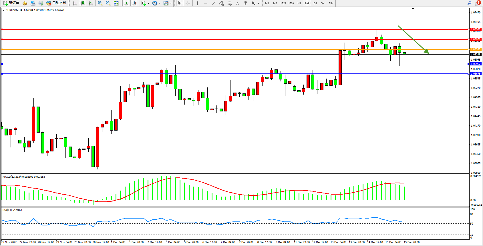 欧元兑美元维持1.06248附近震荡,欧洲央行今天决定将三大利率提高50个基点,并根据对通胀前景的大幅上调,预计将进一步提高利率。自2022年12月21日起,主要再融资业务的利率以及边际贷款便利和存款便利的利率将分别上调至2.50%、2.75%和2.00%。